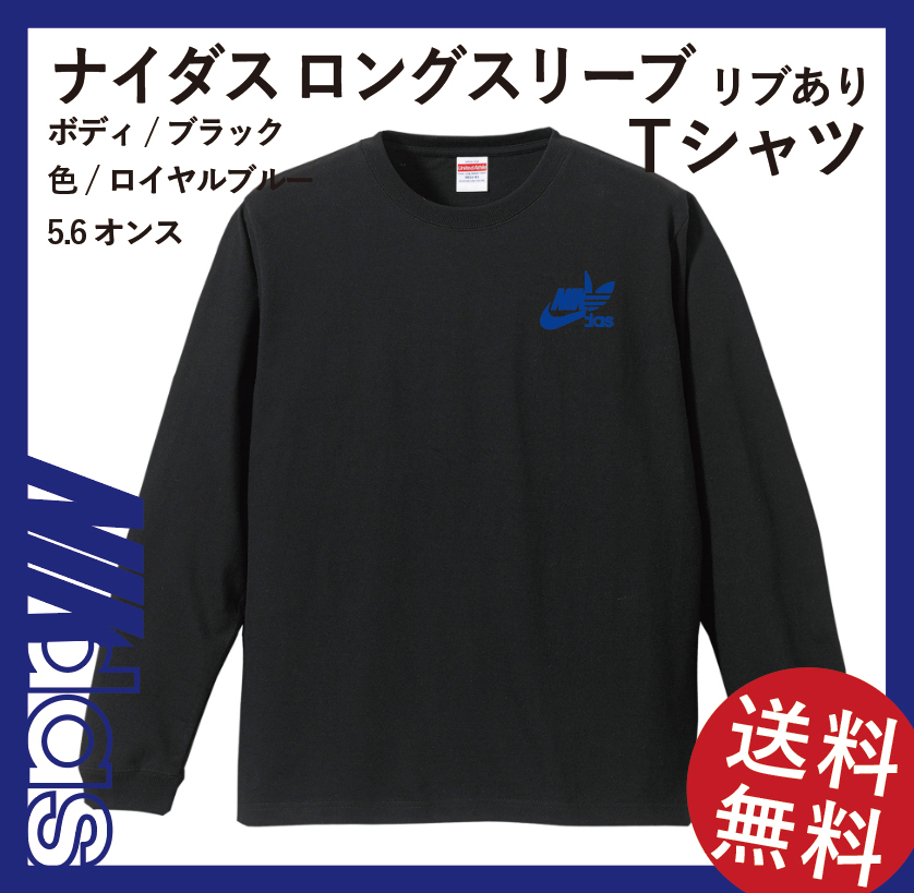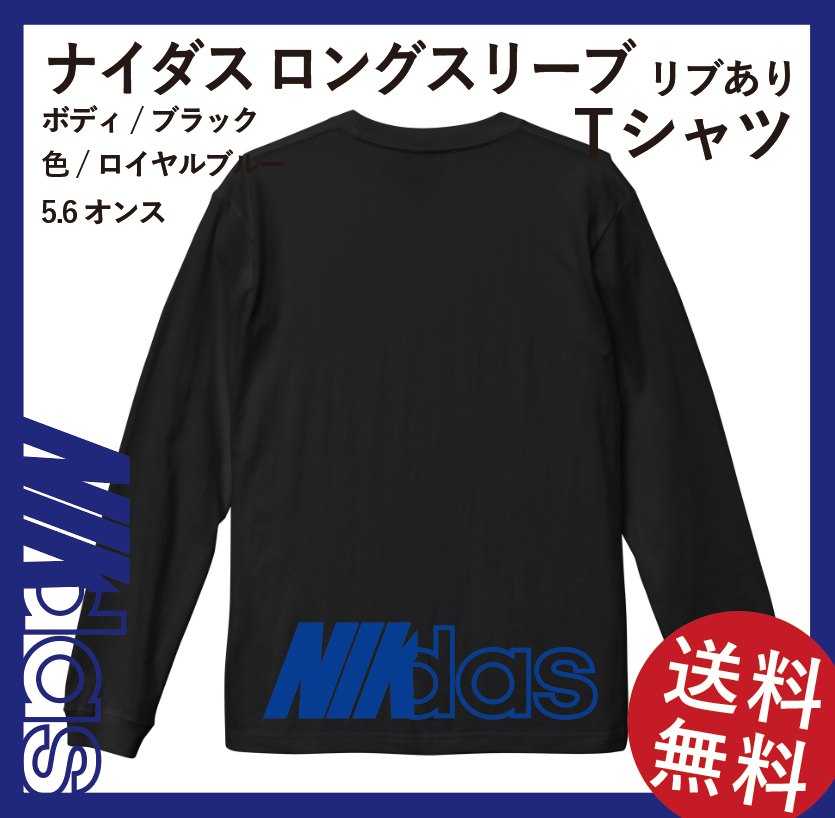 ナイダス Sサイズ ロングスリーブ Tシャツ  ブラック×ロイヤルブルー
