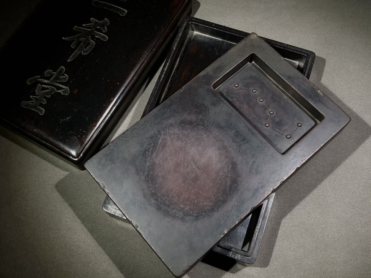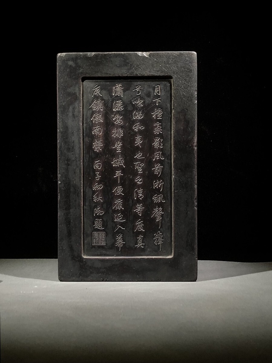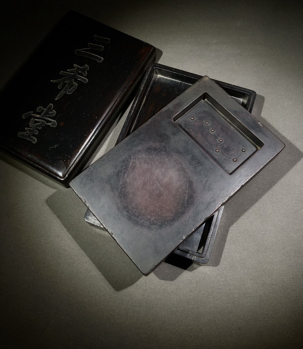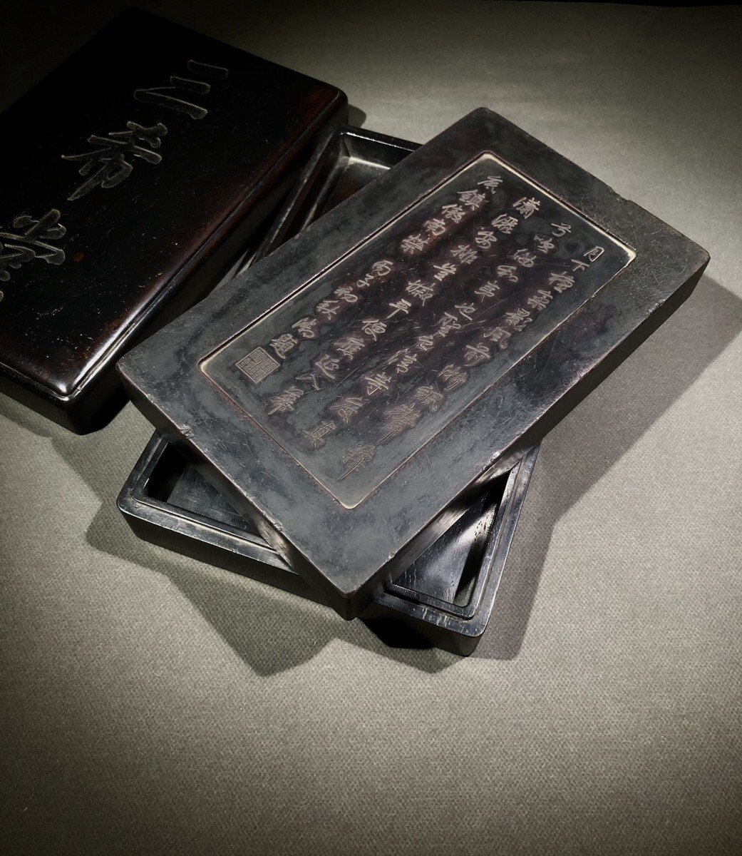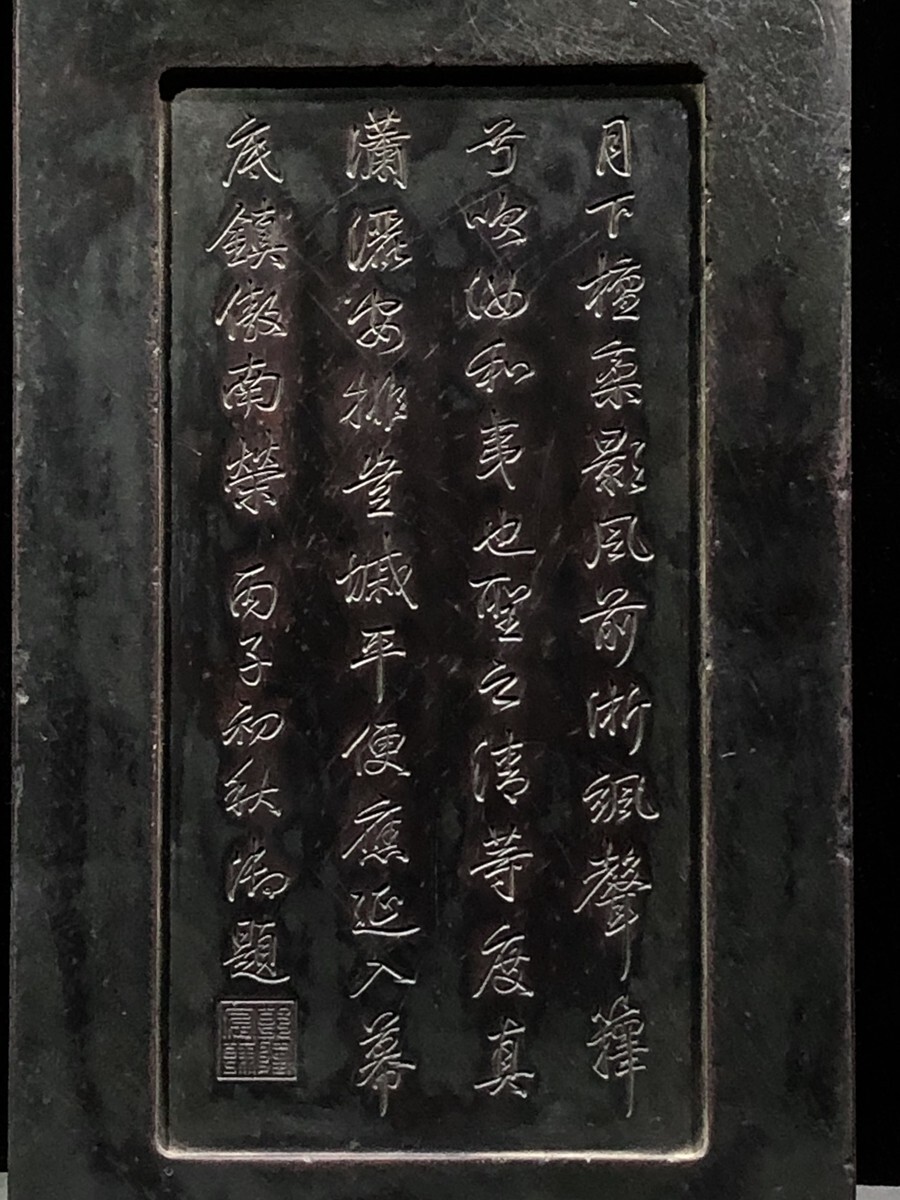 【瓏】老坑端石彫 方形壺文房端渓硯 皇十一子銘 清時代 手彫り 文房四寶 書道具 中国古硯 古美術 蔵出
