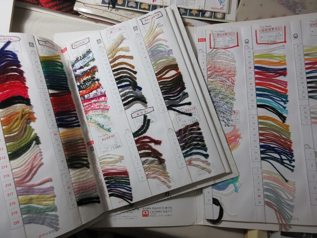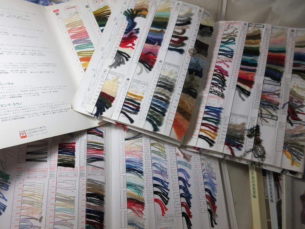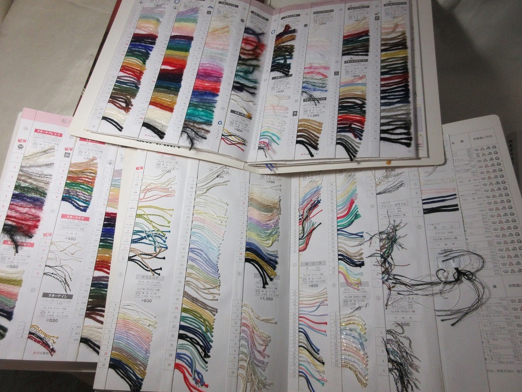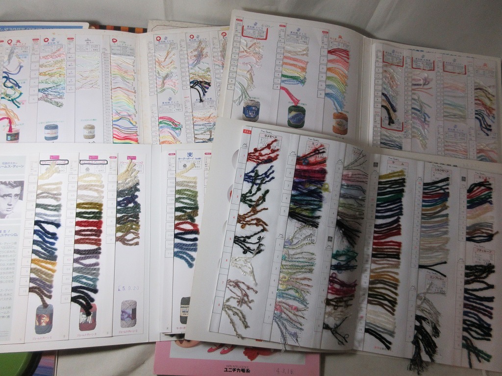 90年代前半 毛糸色見本 まとめて スキー毛糸 オリンパス ユニチカ カネボウです。かなりたくさんの見本色がついています。画像は一部になります。参考にお願いいたします。