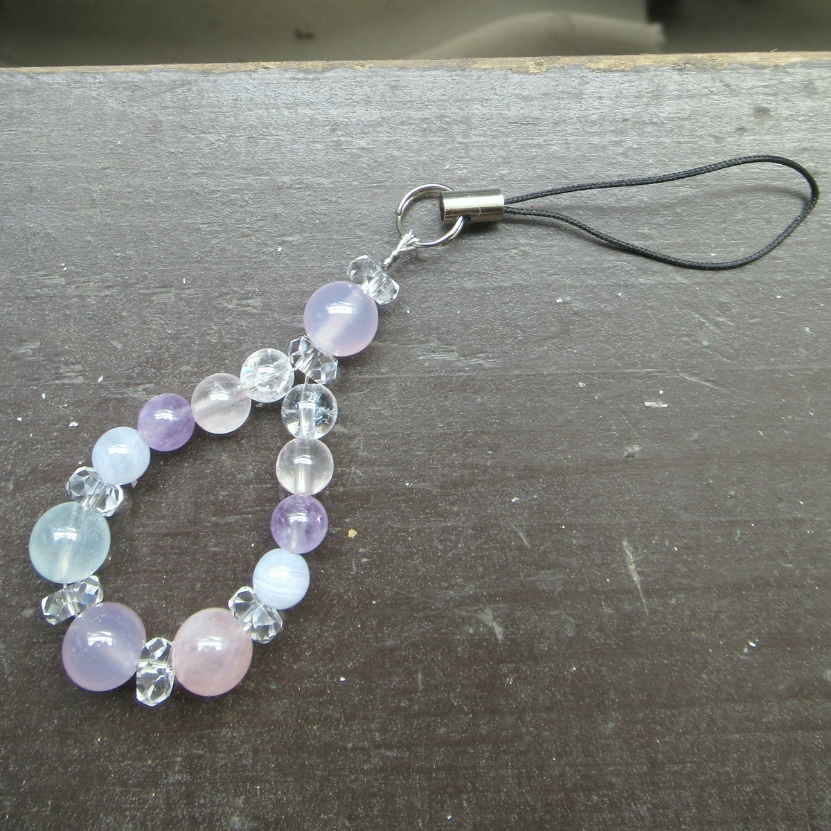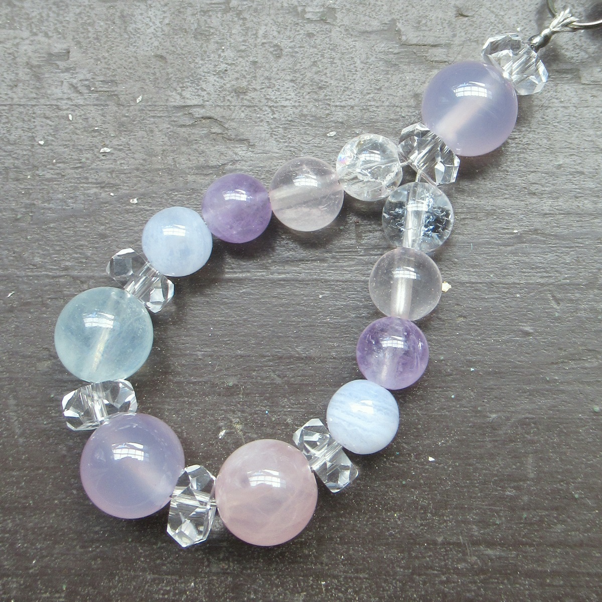カルセドニーxアクアマリンxローズクォーツストラップ 天然石 パワーストーン