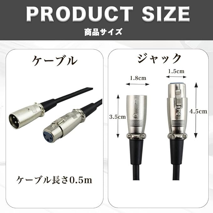 ケーブル マイク コード キャノンケーブル オスメス (0.5m) MM0096