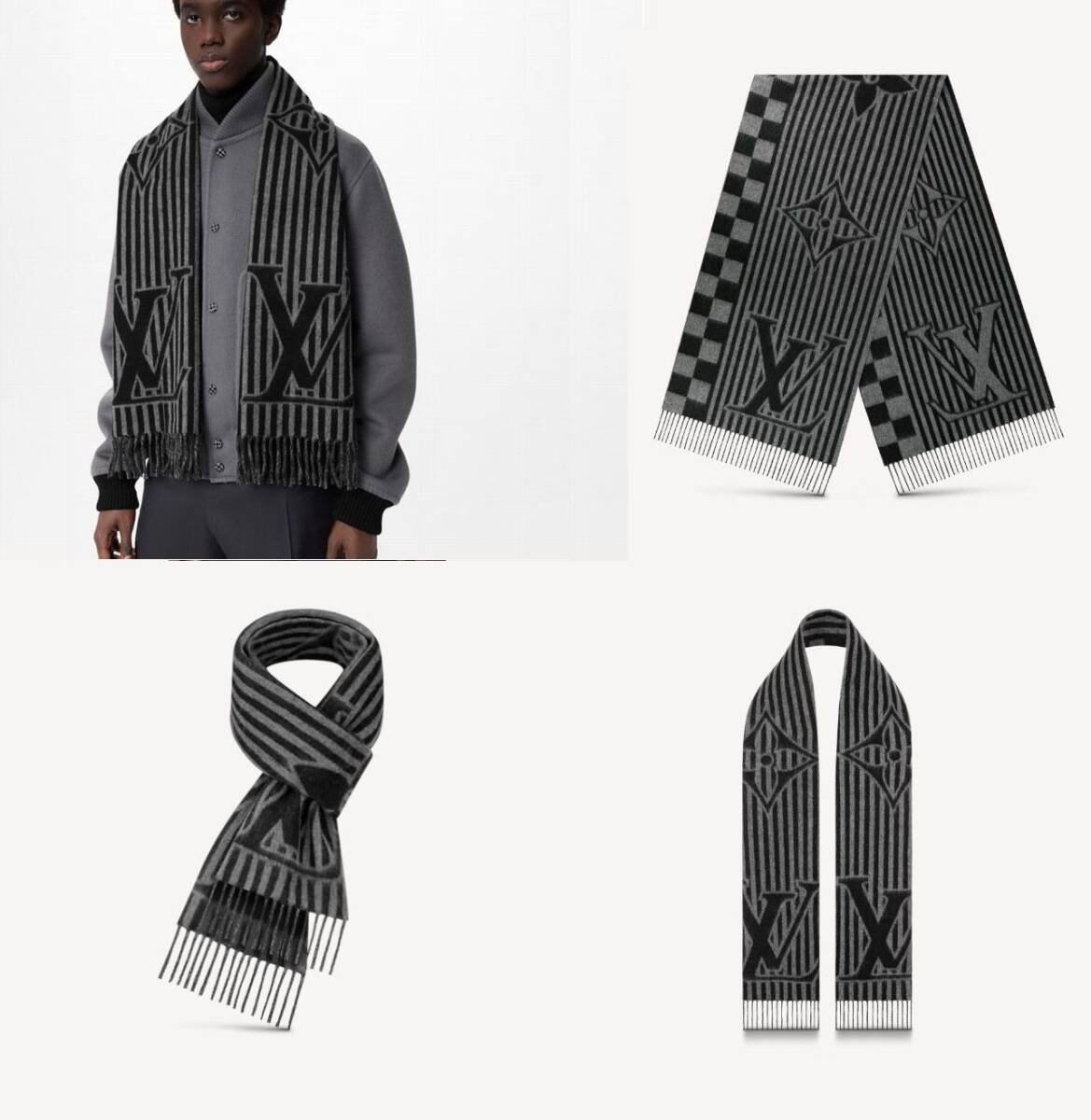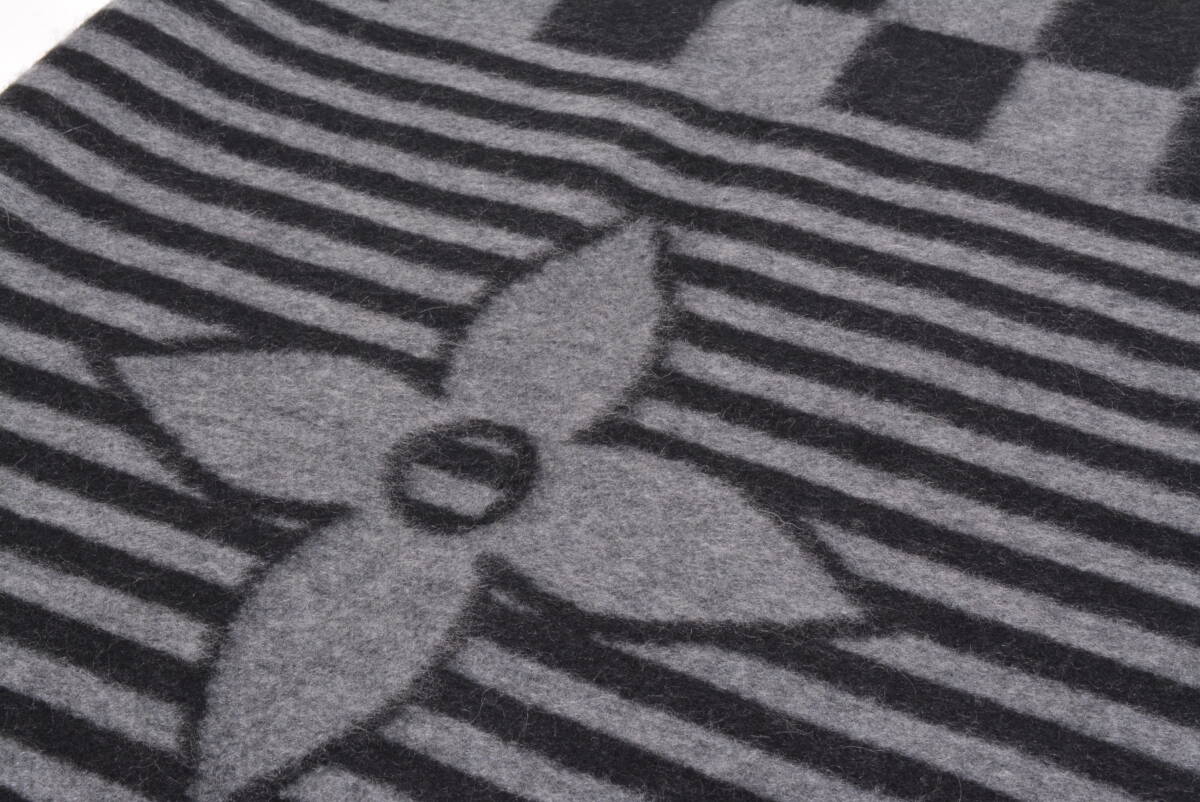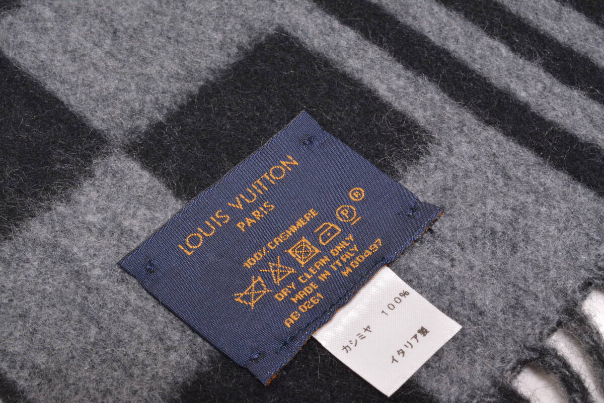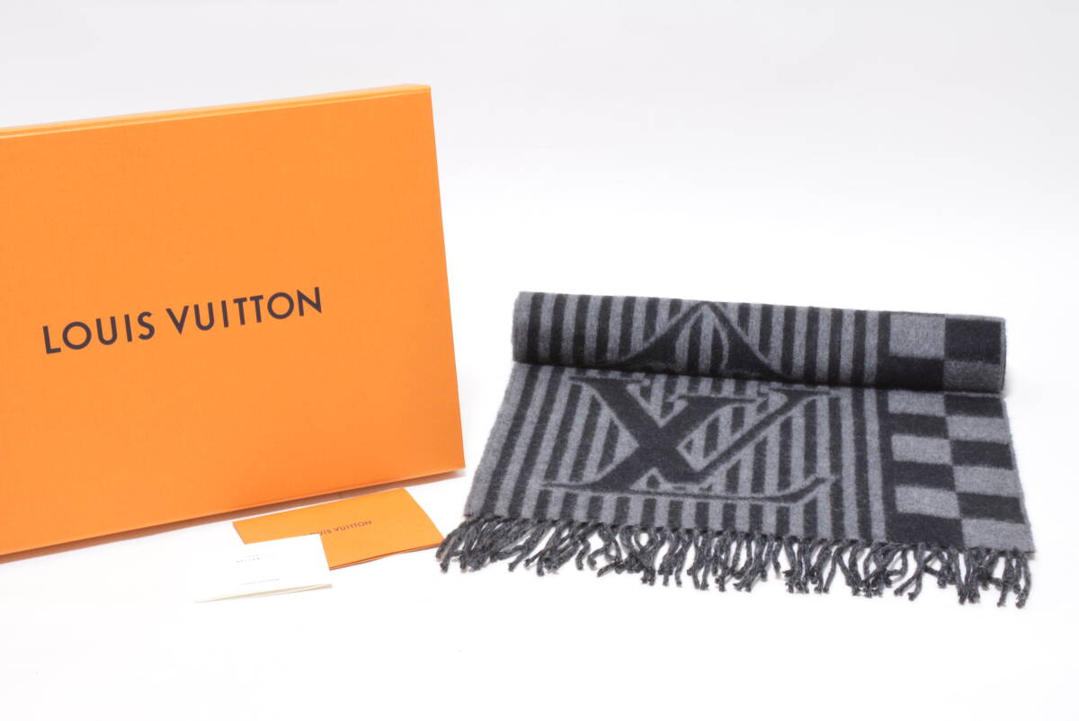 未使用 ルイヴィトン カシミヤマフラー エシャルプ・LV グラフィカル カシミヤ100% ダミエ ストライプ グレー×ブラック