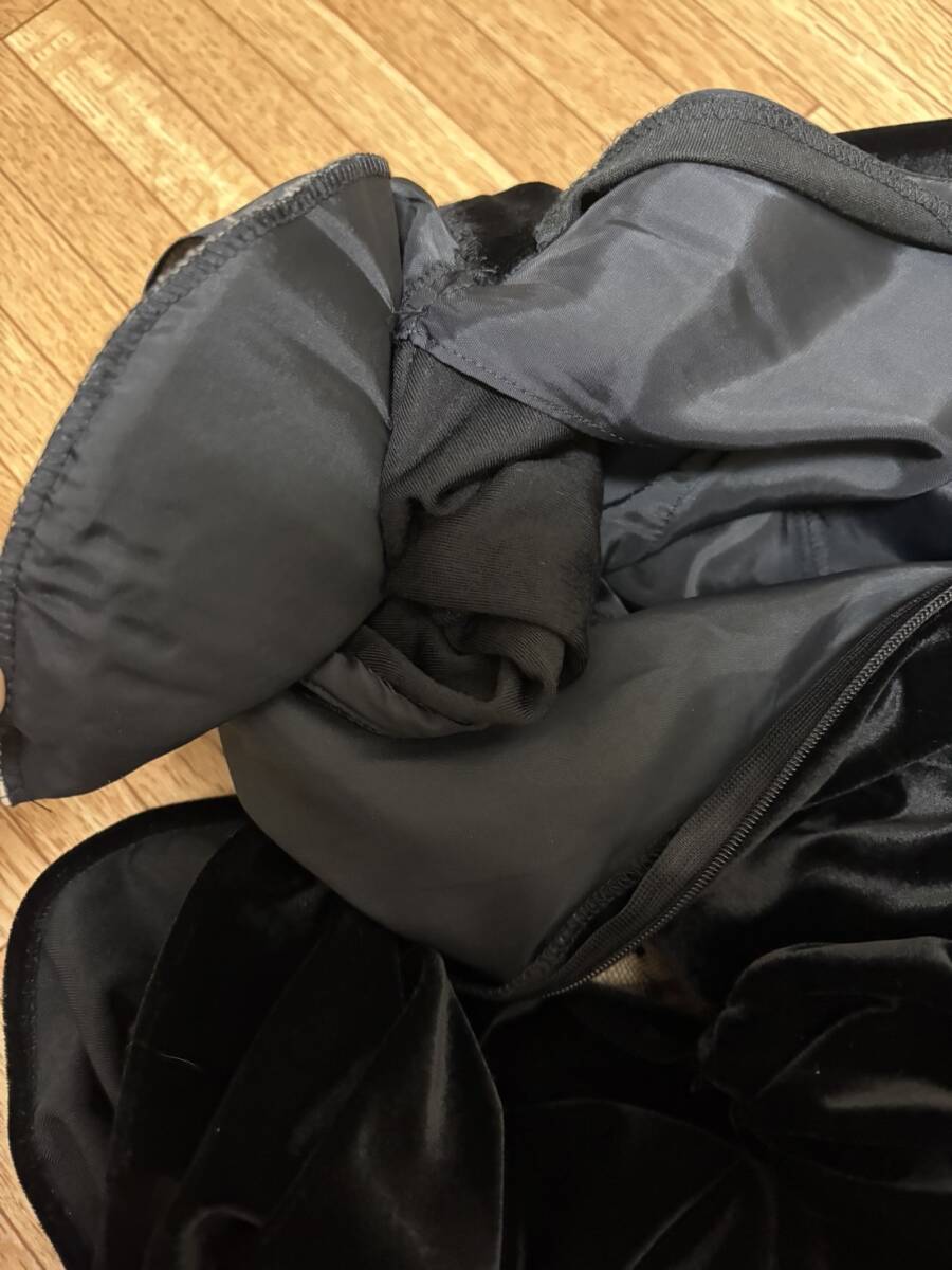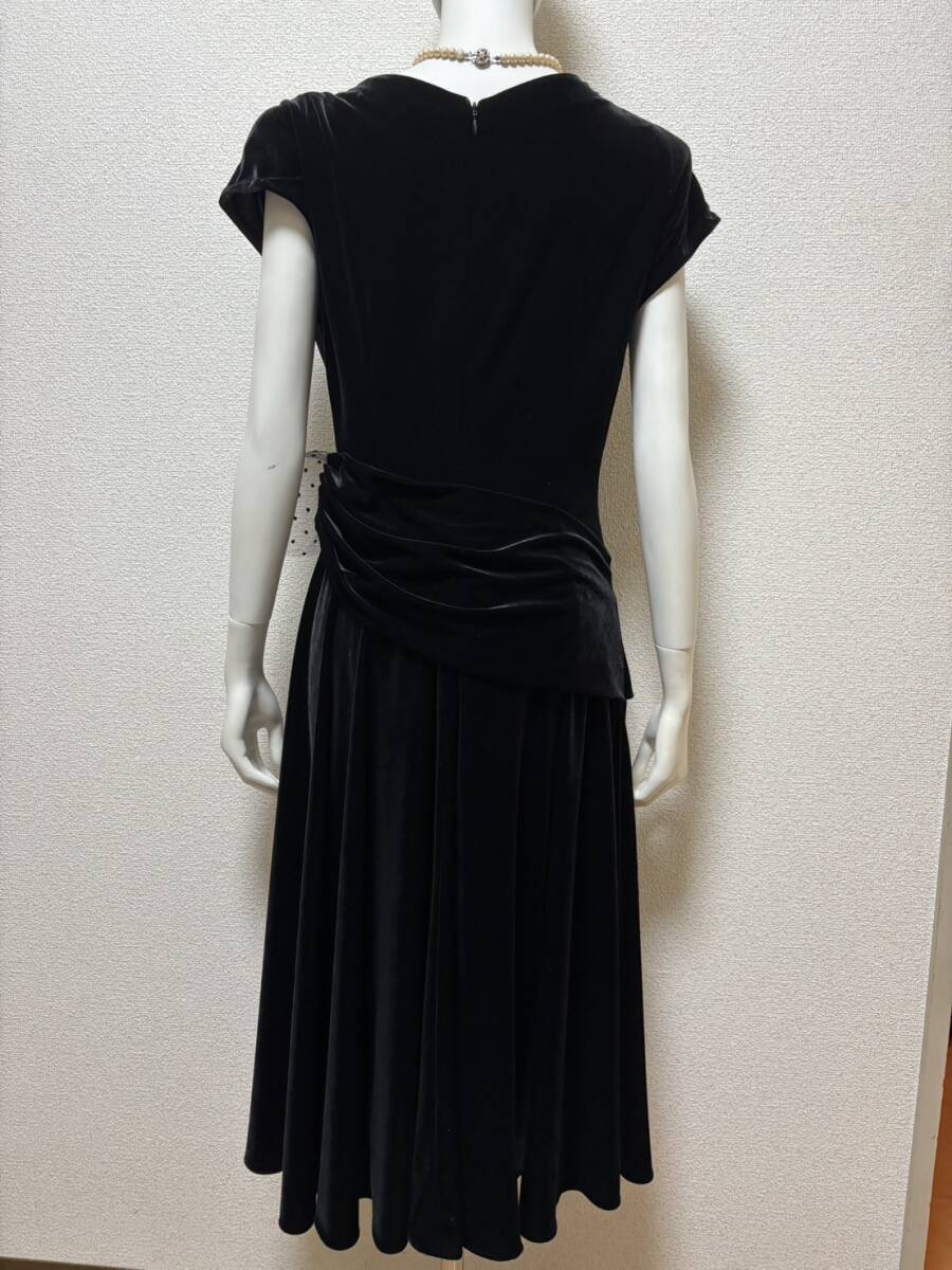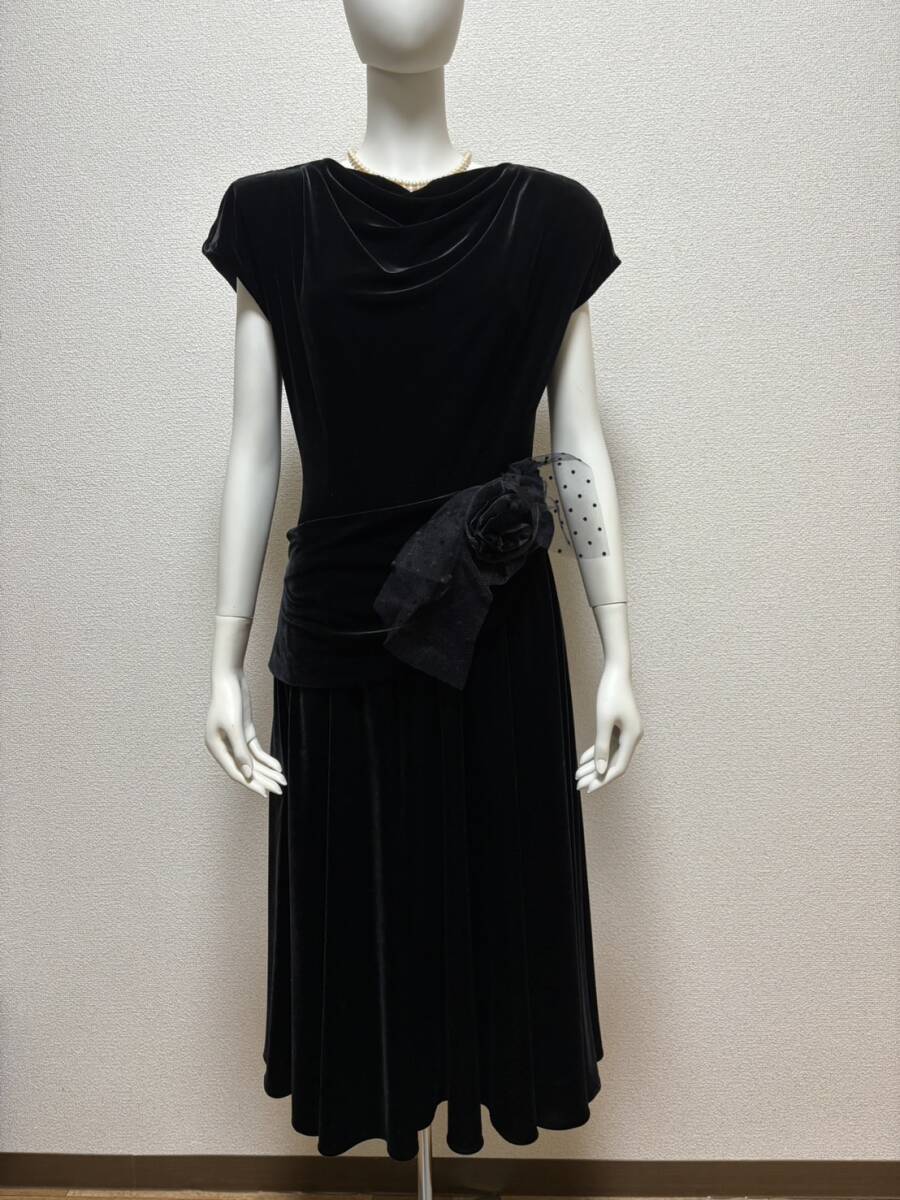 サントネージュ日本製 上質 別珍ベルベットベロア生地ロングドレス ワンピース ウエストリボン付 ブラック黒9号フォーマルパーティードレス
