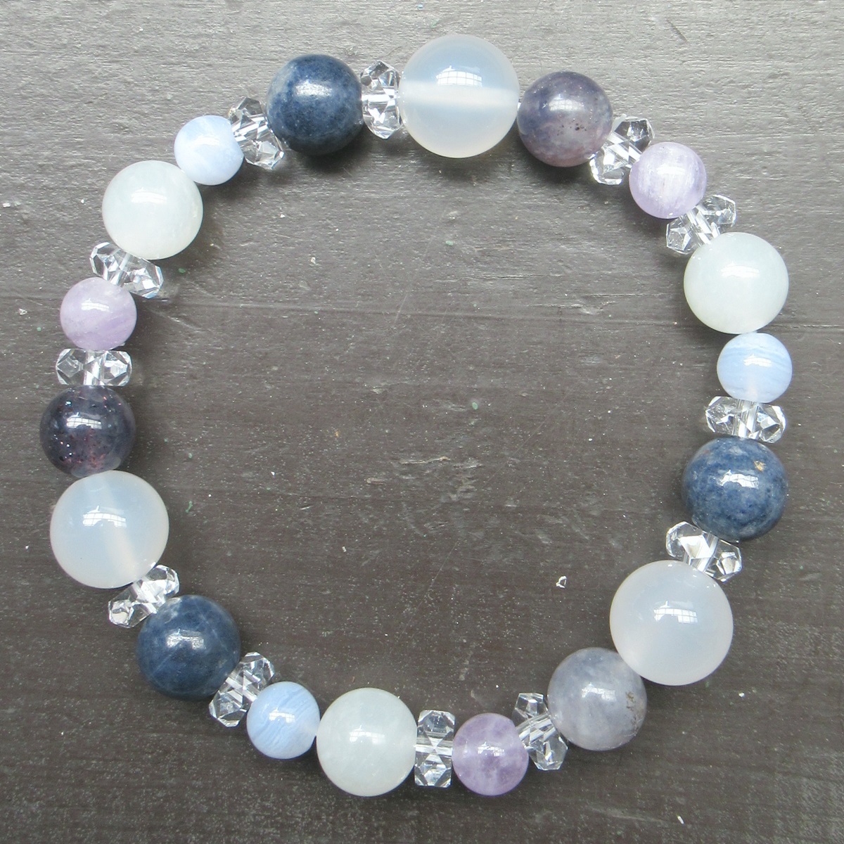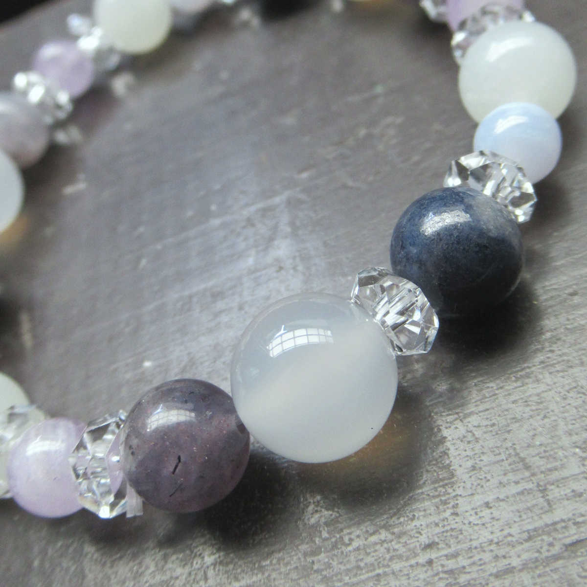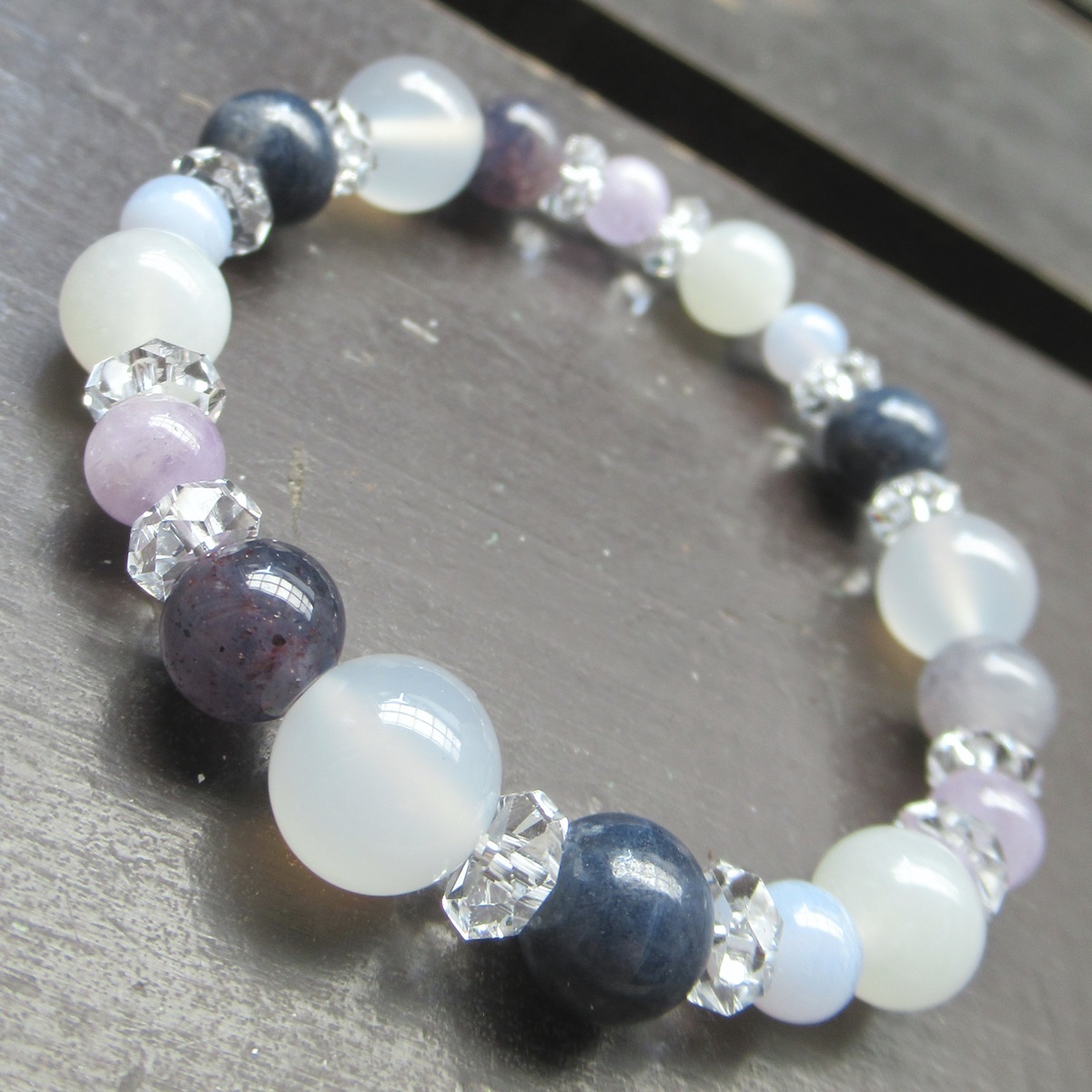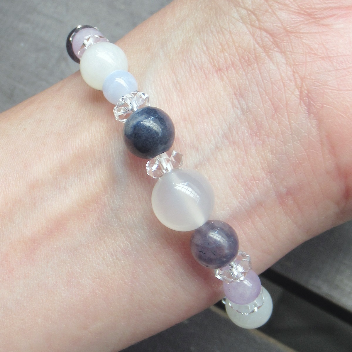 ホワイトカルセドニーxサファイアxアイオライトxアメジストブレスレット 天然石 パワーストーン