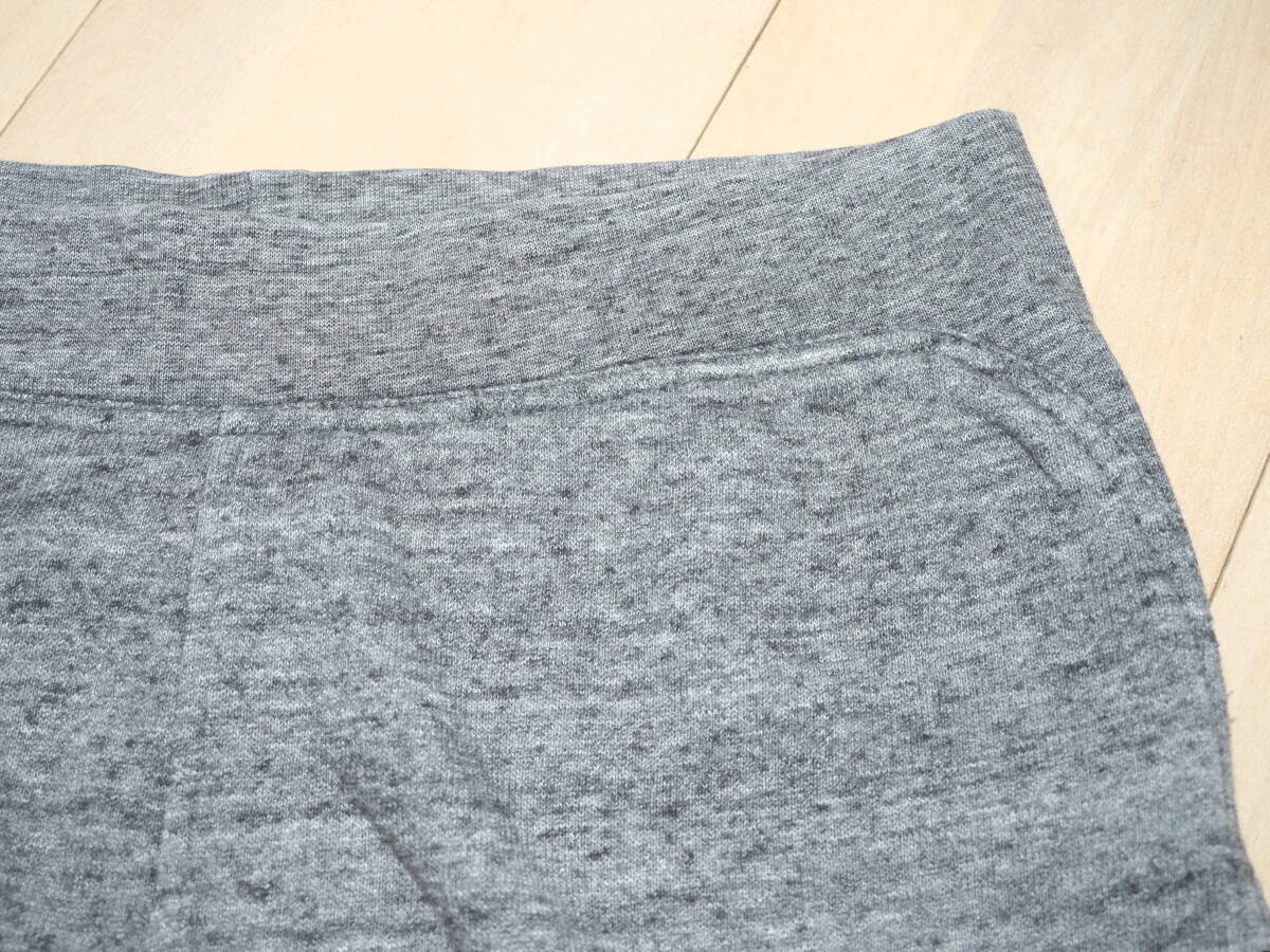 ウェストと裾はゴムが通っています。サイドポケットなしのつくりです。
