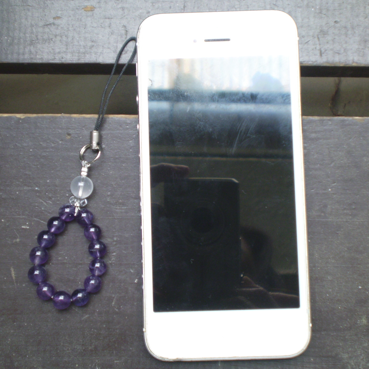 ミルキークォーツxアメジストストラップ 天然石 パワーストーン