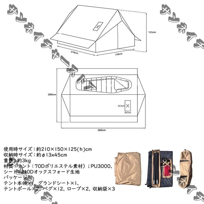 【一人でも簡単設営・UVカット・防水】テント本体の生地は高品質70オックスフォードとして、超軽量素材で一人で組立もできます。裏面にポリウレタン樹脂(PU)でコーティング加工を施す加工、優れたUVカットで、真夏の日差しからしっかり肌を守ってくれます。しかも耐水圧はなんと3000mm以上になって、大抵の雨には対応できます。またテントのポールの素材はアルミニウム合金製なので、軽くてサビにくいです。