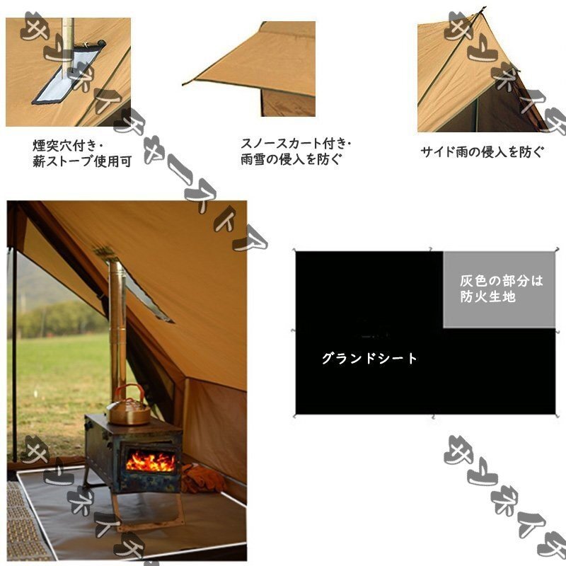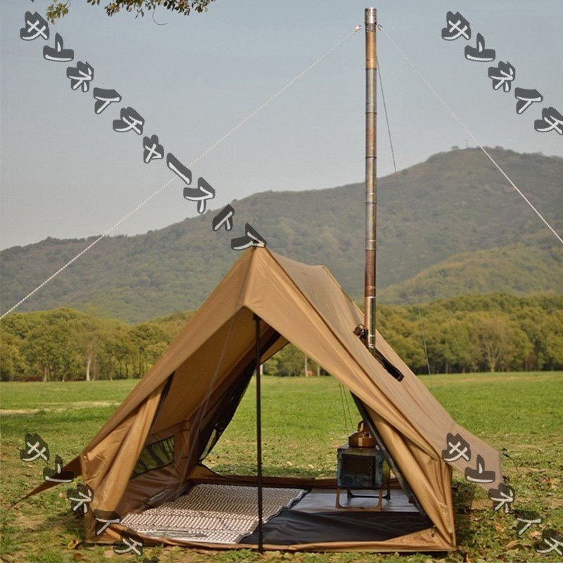 煙突テント ワンポールテント 1~2人用 煙突穴付き 防火シート BC軽量 通気 防風/防雨/防災 簡単設営 収納袋付き キャンプ アウトドア用品