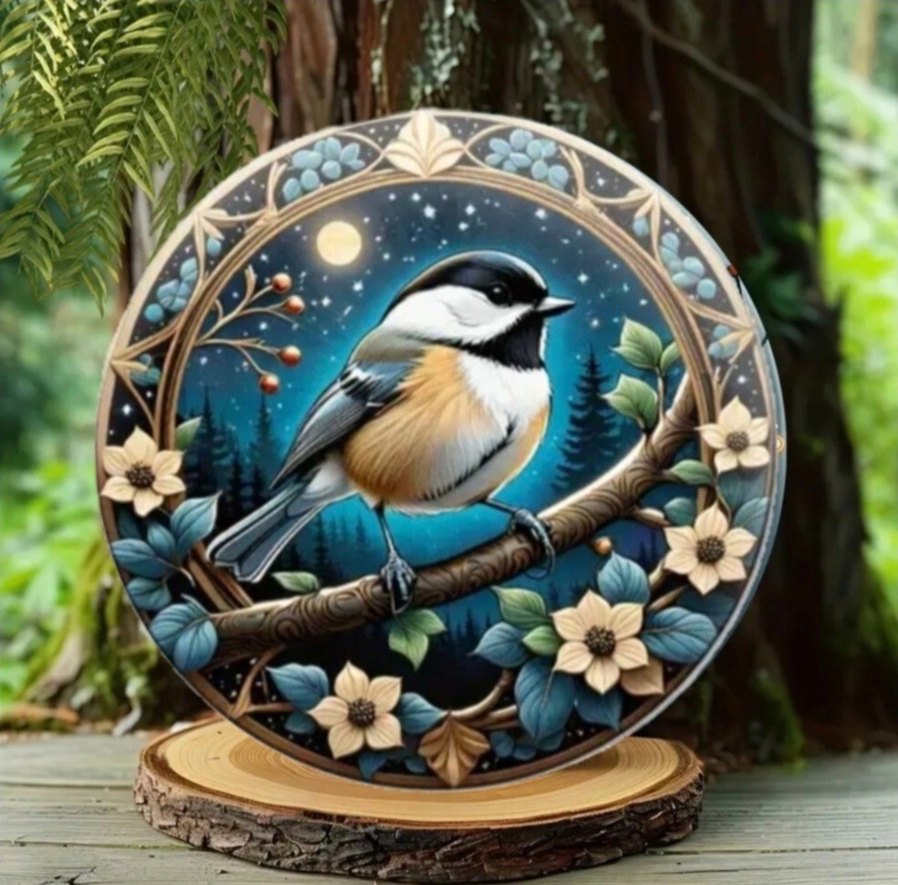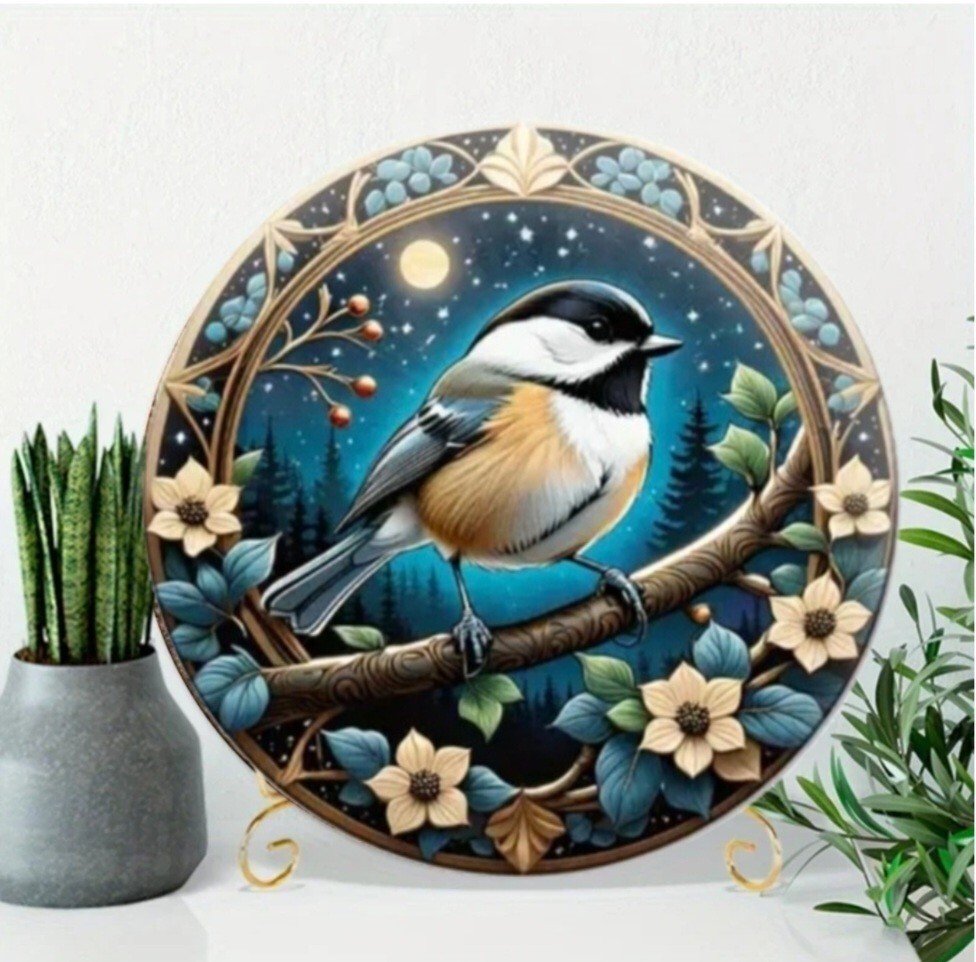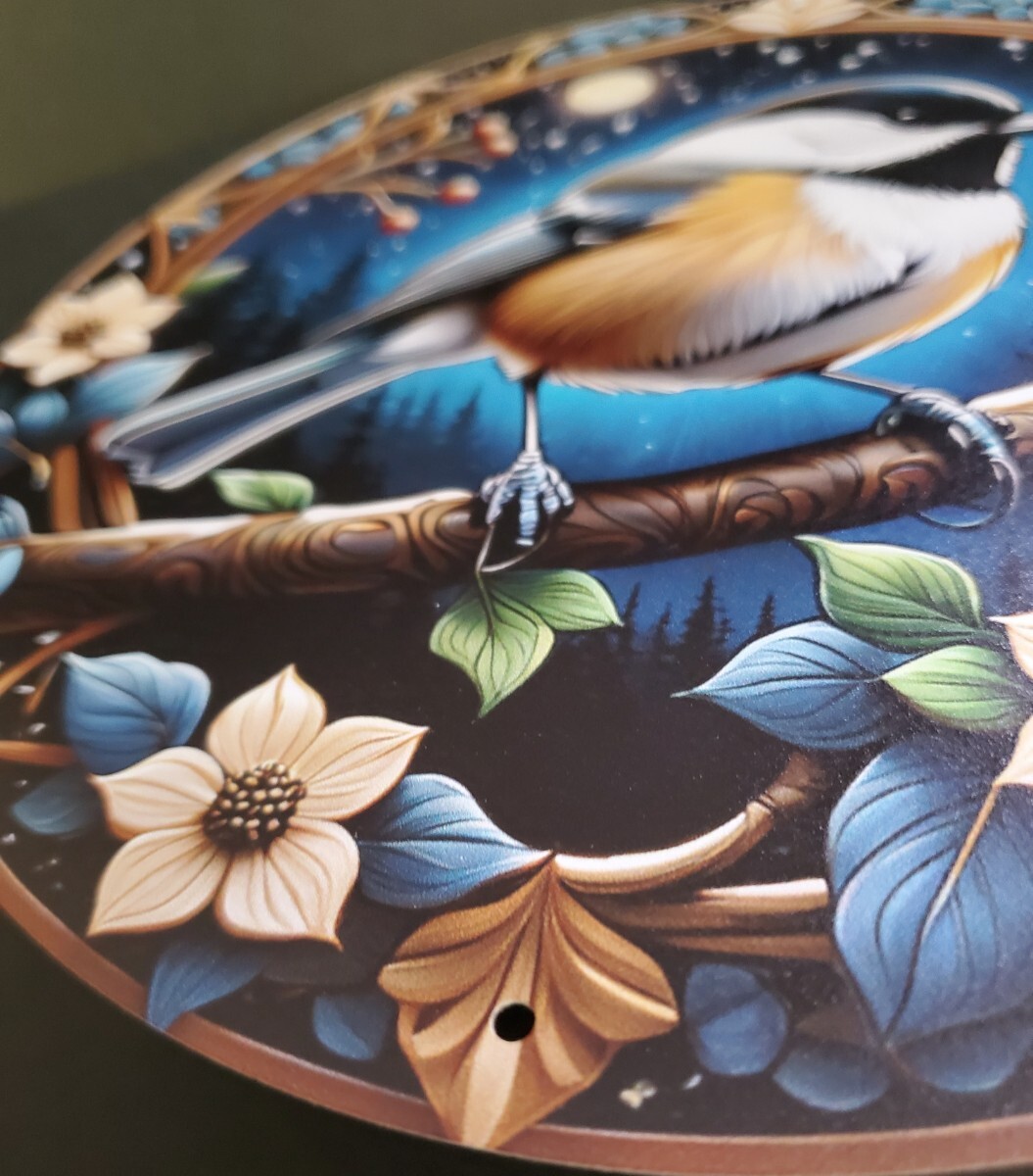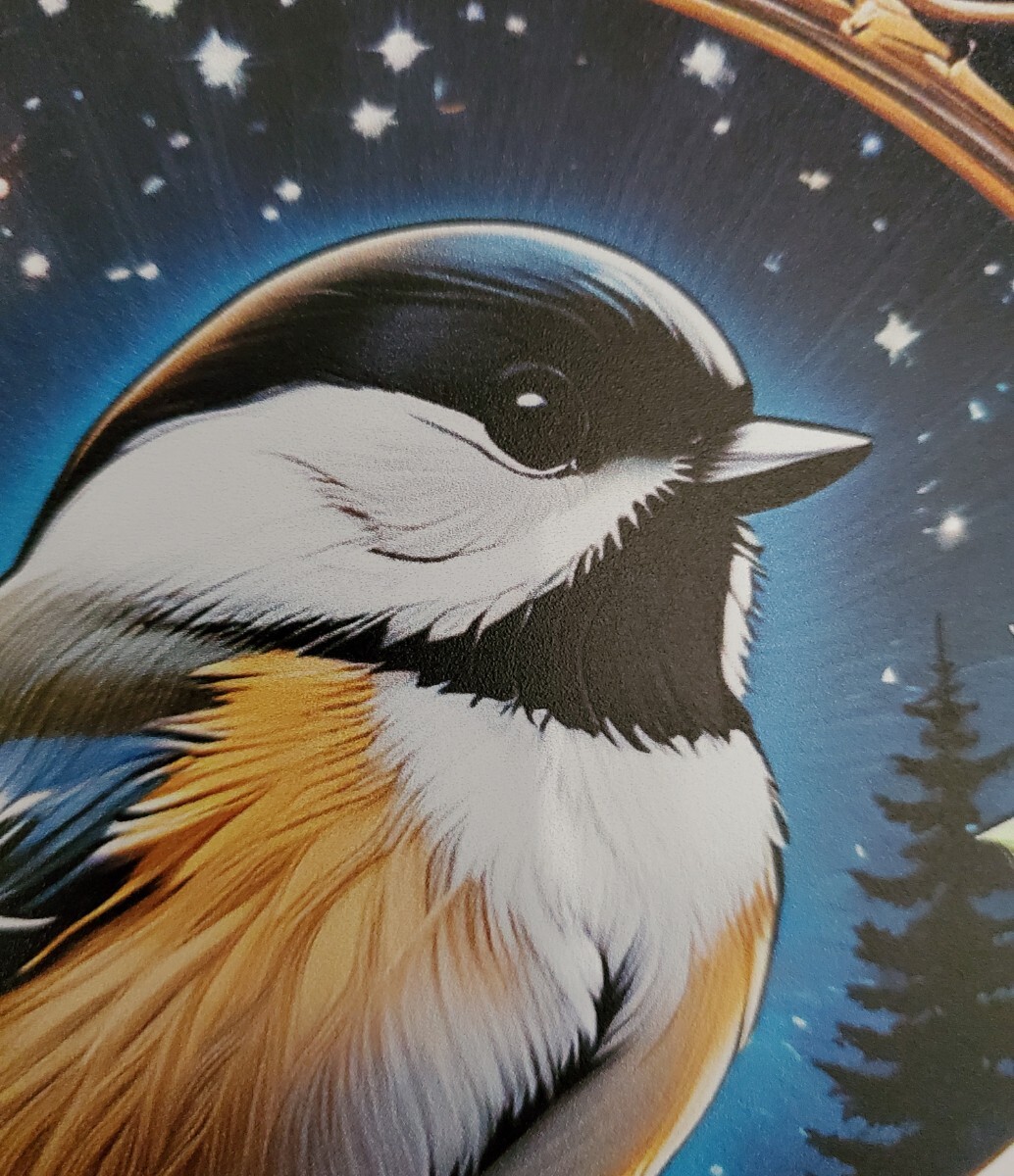 アルミニウムのメタルボードに3Dのプリント技術で描かれた鳥のメタルアートです。