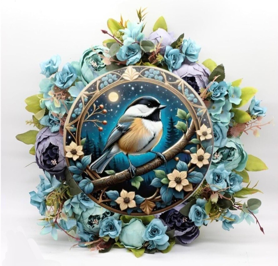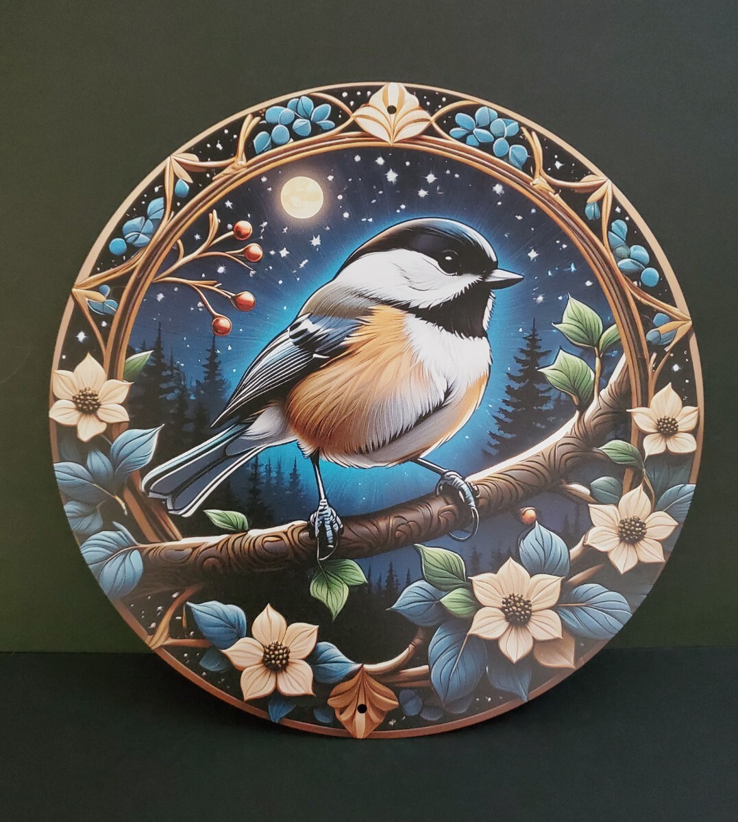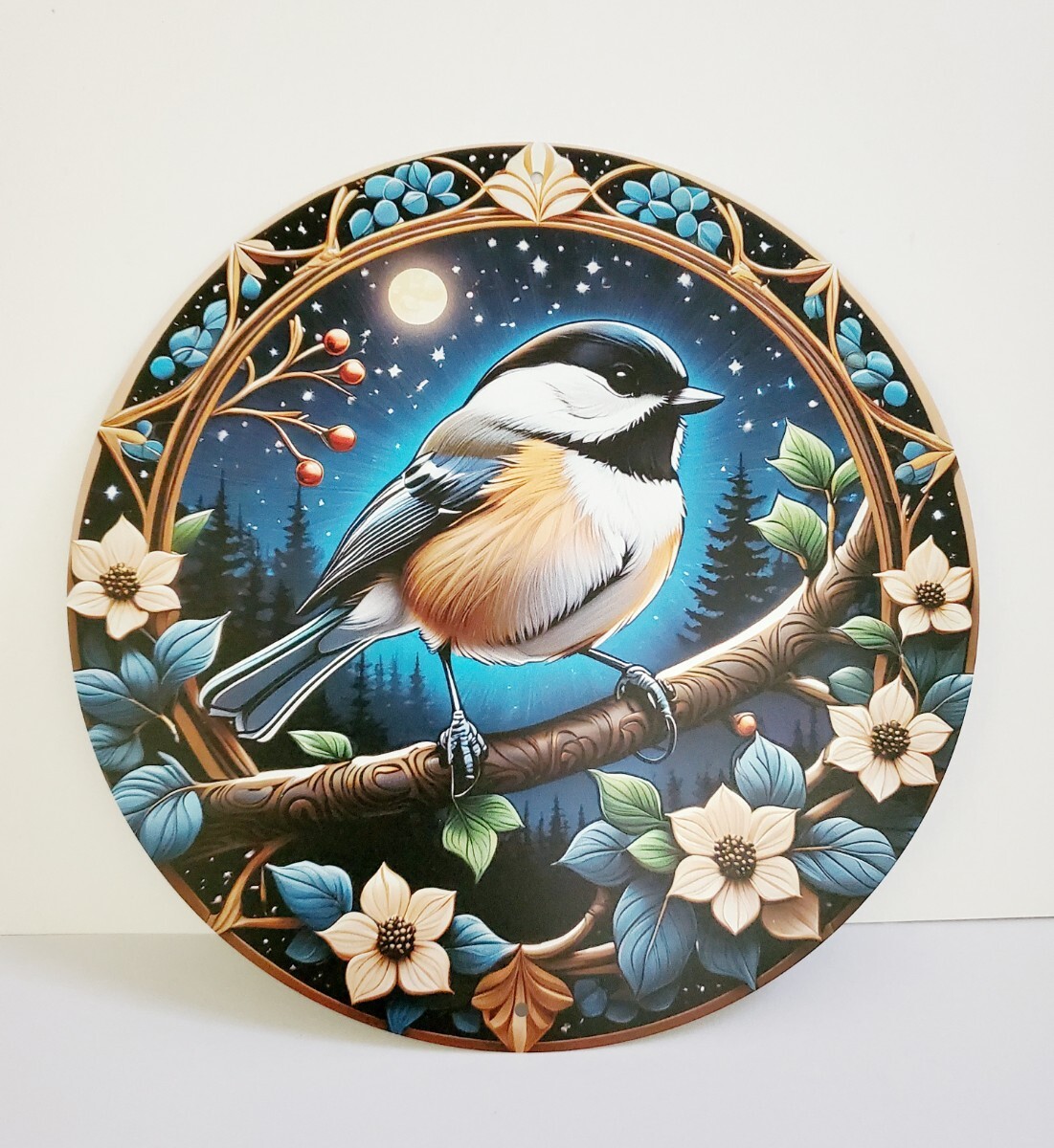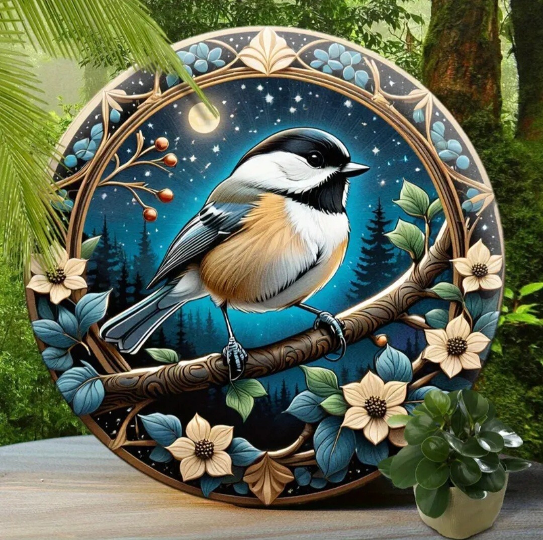 アルミニウムのメタルボードに3Dのプリント技術で描かれた鳥のメタルアートです。