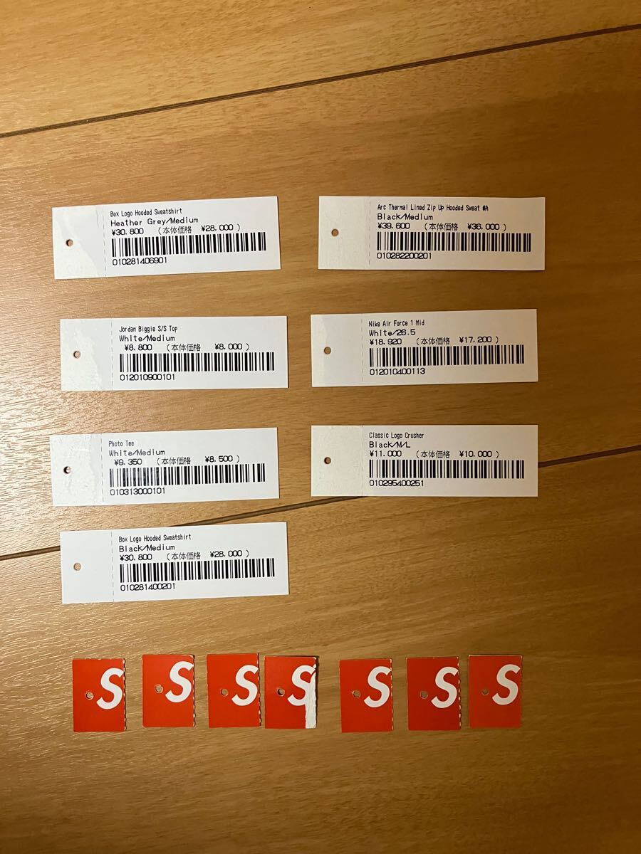 シュプリームの全タグ7枚と半タグ7枚です。オンライン購入時の付属品です。未使用品。画像で御確認ください。全タグの裏面も載せておきます!全タグ切れば半タグにもなります!支払いはヤフー簡単決済のみ受付にて、送料元払いにて落札者様の御負担となります。レターパックライトにて全国一律430円にて発送します。追跡番号もご連絡します。