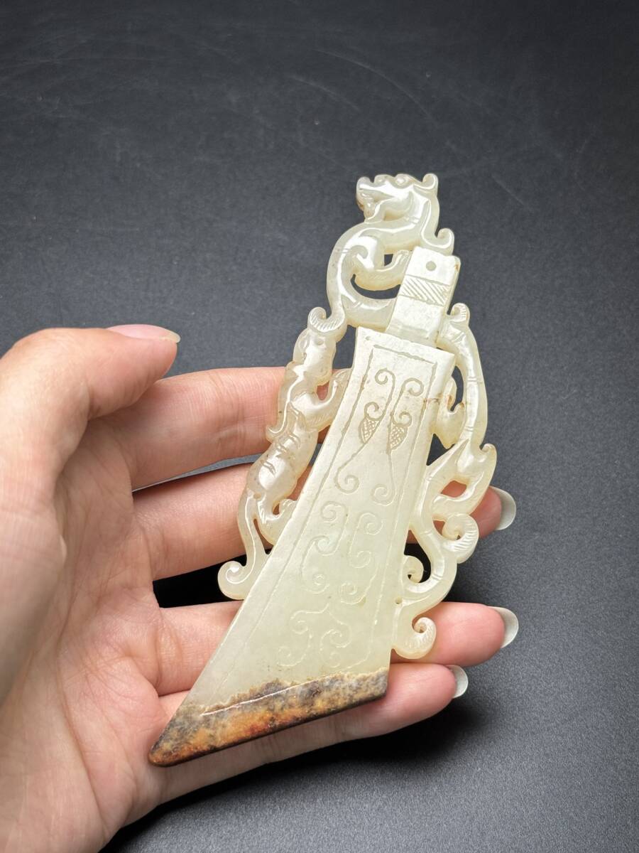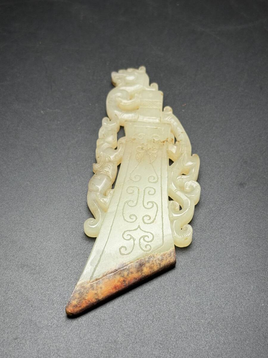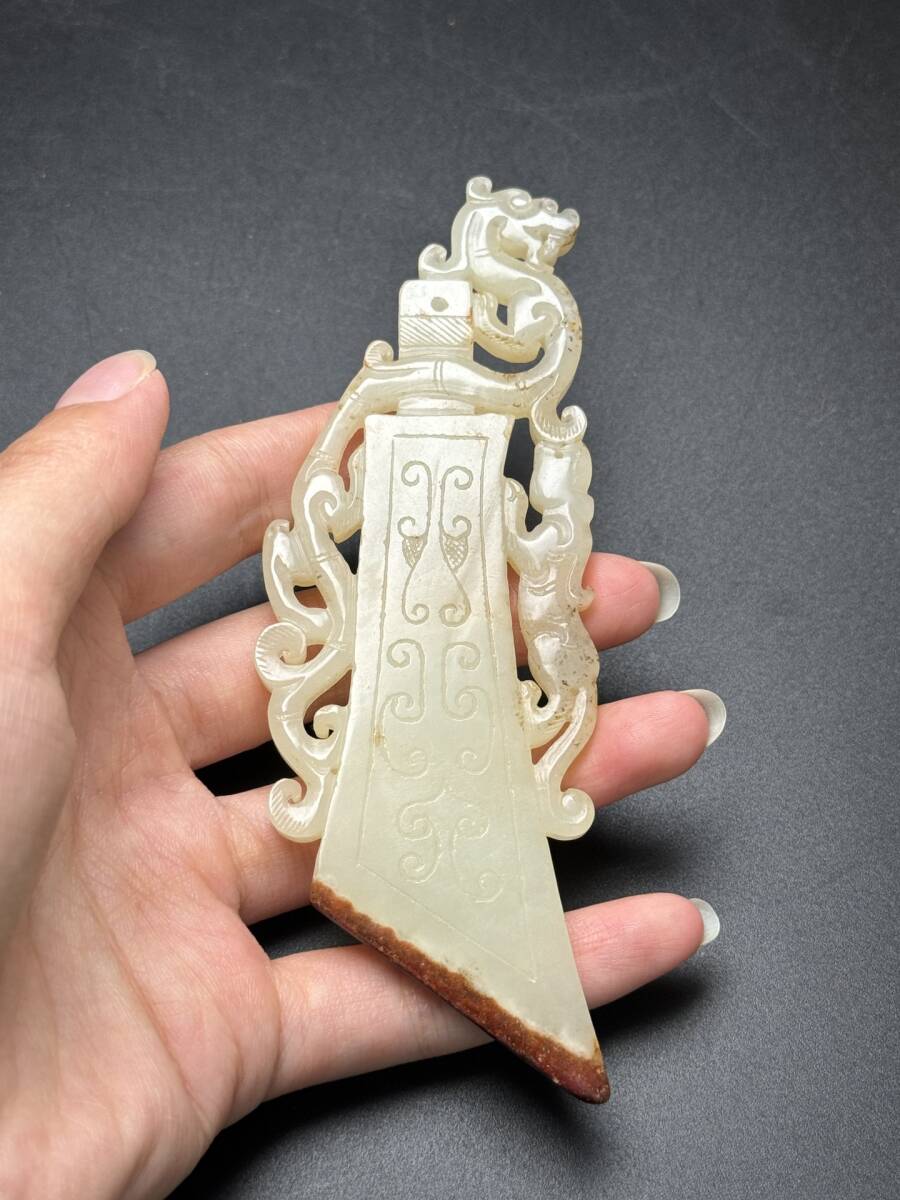 *珍品旧蔵* 清 和田玉 和田玉玉璧,府上有龍 唐物 古美術品 玉彫 古玉彫 古置物 古賞物 手彫り 古美味 中国古玩 ZK0219