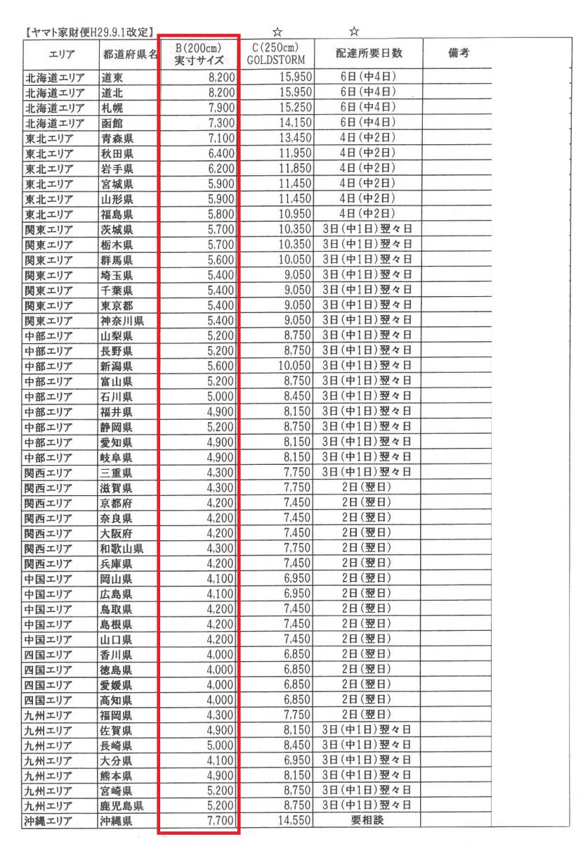 ■ヤマト家財便 送料に関して