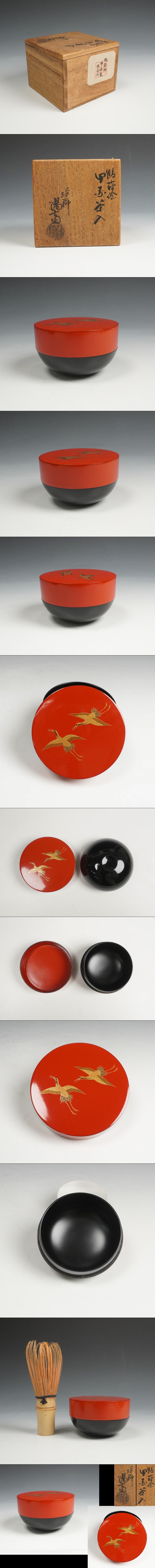 | 塗師 岡本陽斎 作 鶴蒔絵甲赤茶入 棗 共箱 茶道具 保証品 | ||||