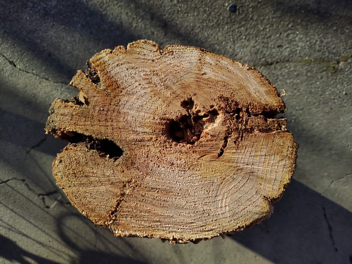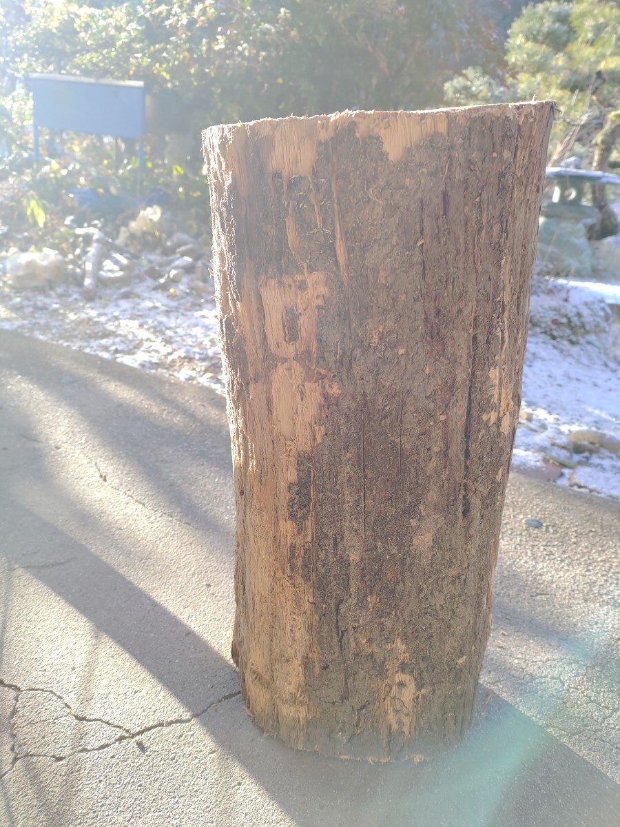立枯れていた樫の木をチェーンソーでカットした丸太です。
