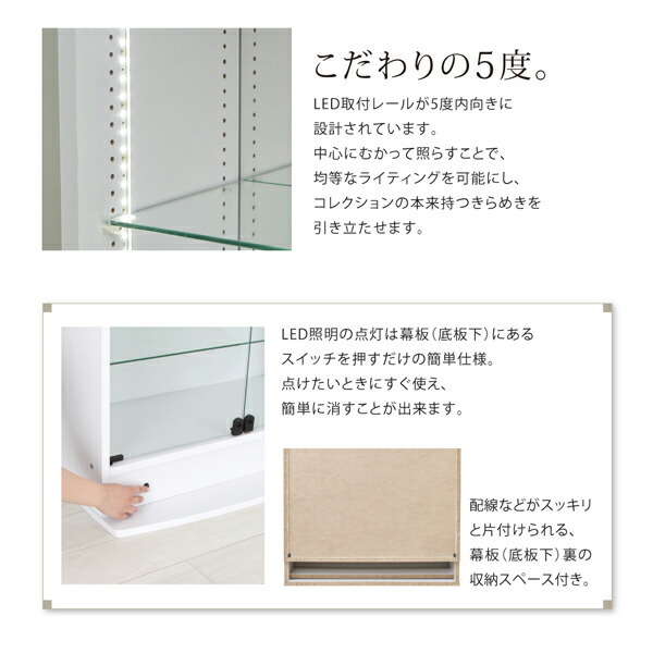 背面ミラー付き壁面コレクション収納 本体 上置きロータイプ付き 幅54.1 高さ225~252【収納カラー:ホワイト】です。