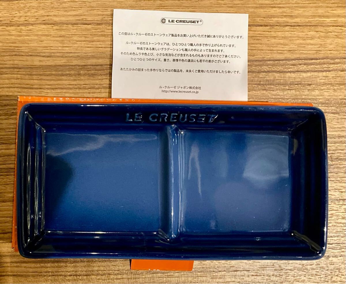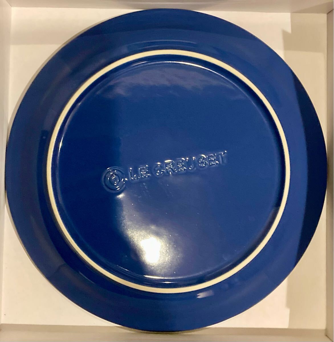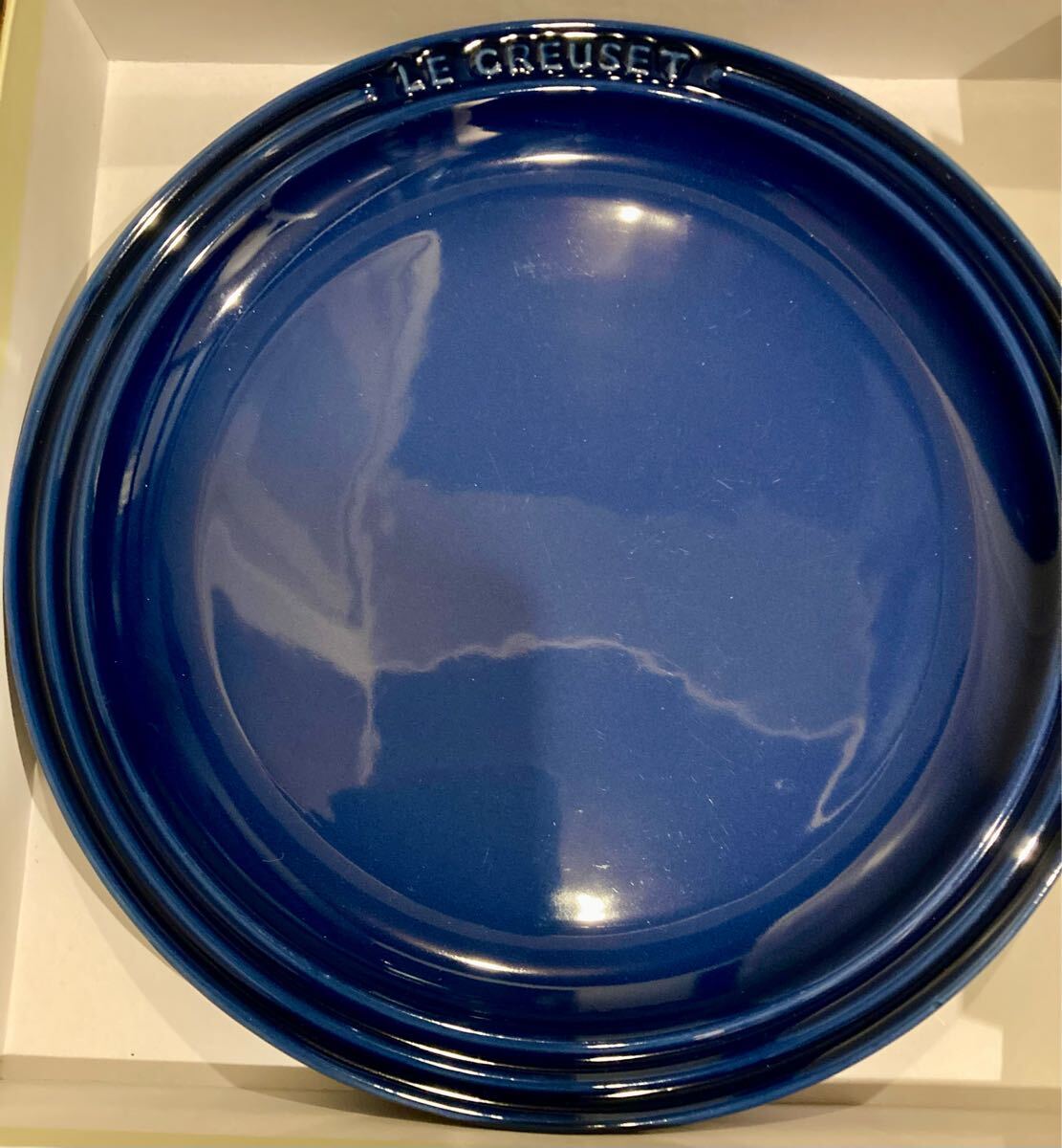 廃盤色レア★LE CREUSETルクルーゼ★ラウンド・プレート 23cm2枚&ヤクミプレート17cm 計3点 ロイヤルブルー ロゴ入り 国内正規品 箱入り