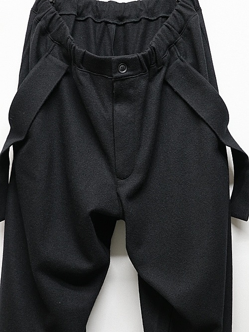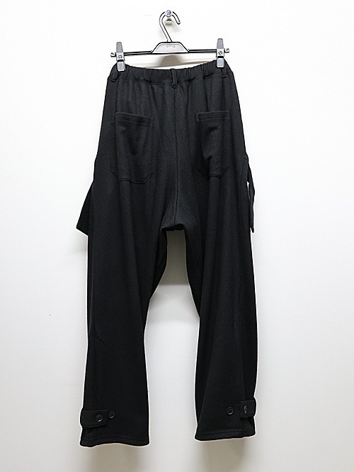 Yohji Yamamoto(ヨウジヤマモト) SOFT JERSEY HEM TAB PANTS/BLACK 定価 70,400円(税込) HO-T35-176-1BLK QUALITY 70% WOOL 20% POLYESTER 5% ACRYLIC 5% POLYAMIDE SIZE 3 ウエスト 80~90 cm 股上 36 cm 股下 73 cm 渡り 43 cm 裾巾 22 cm made in Japan |