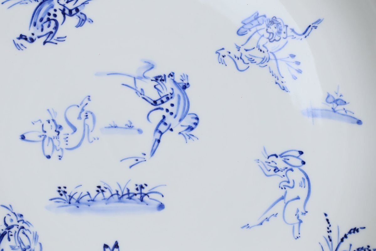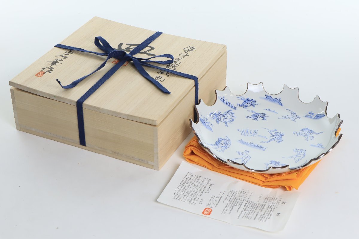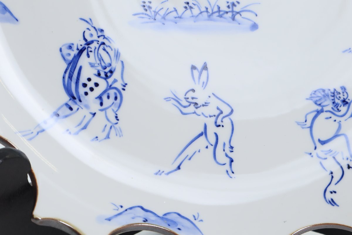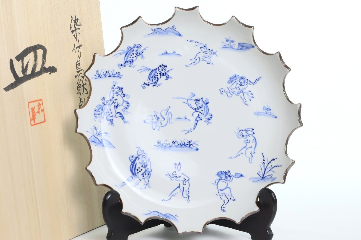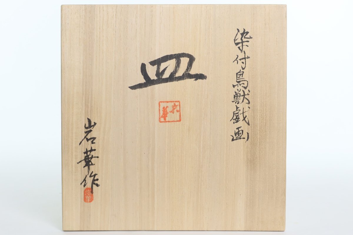 | ・京焼 高木岩華 染付鳥獣戯画 皿 共箱 /飾皿 鉢 染付皿 | ||||||||||