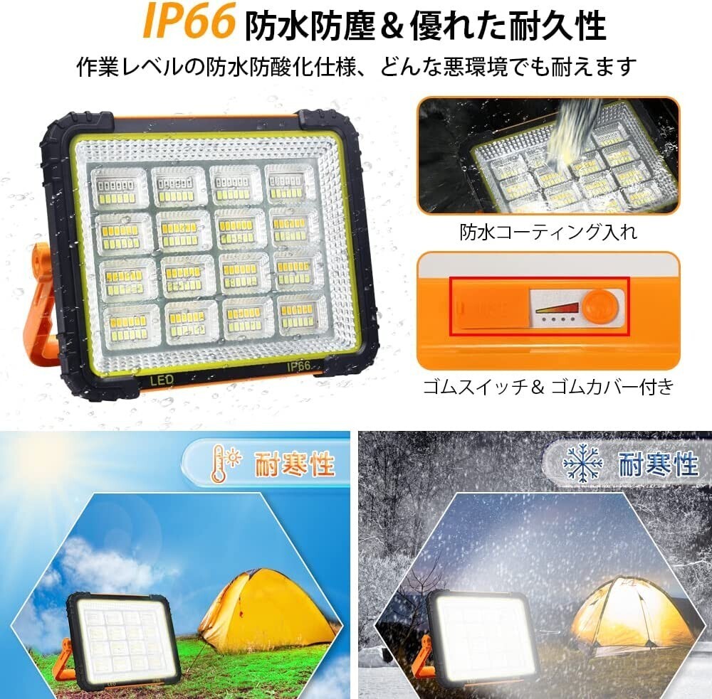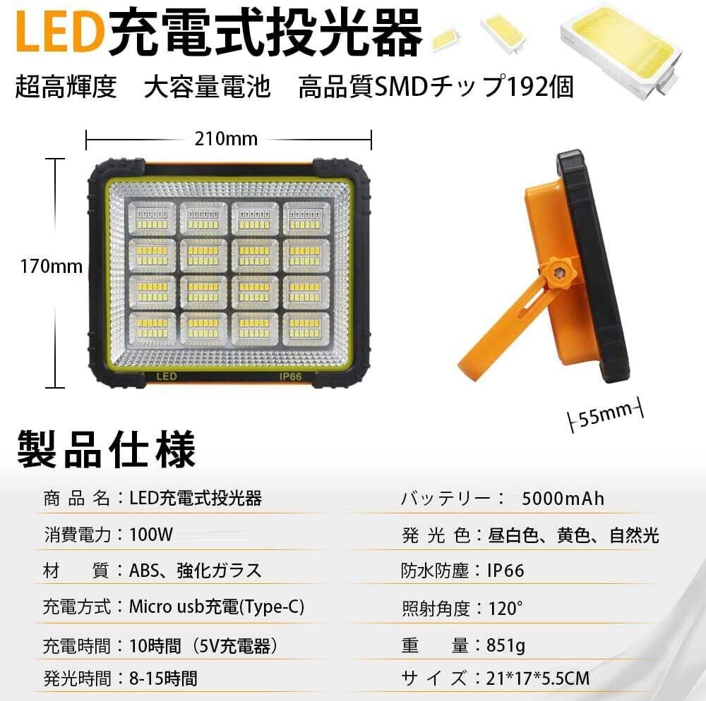 送料込 100W LED作業灯 大容量 5000mAh USB 充電式 投光器 高輝度 薄型 赤青点滅 IP66防水 マグネット付き 照明 懐中電灯