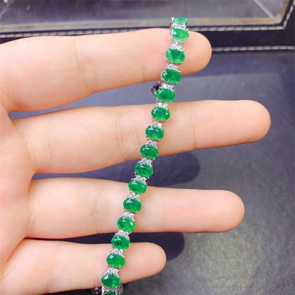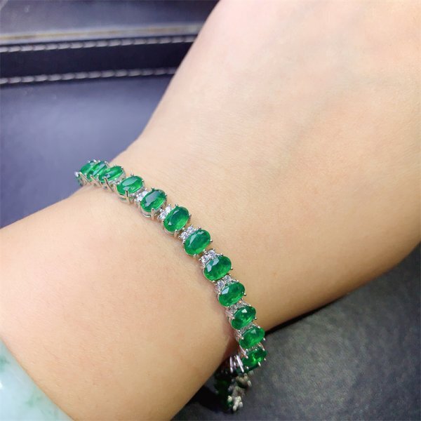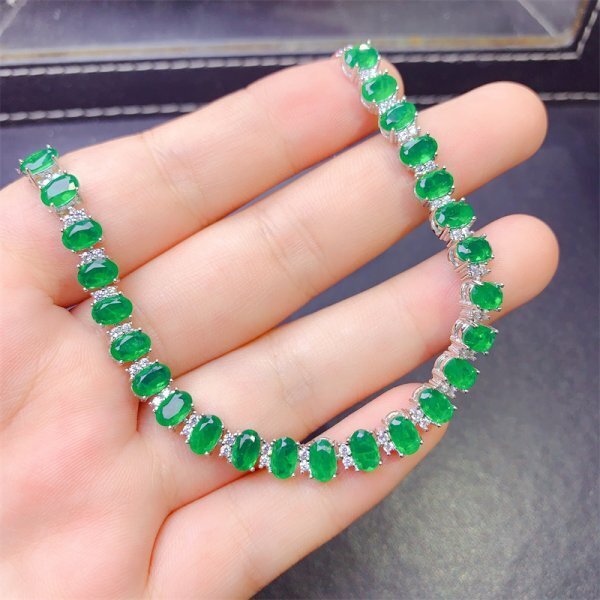 女性用925スターリングシルバーとエメラルドの高級ブレスレット、ギフト