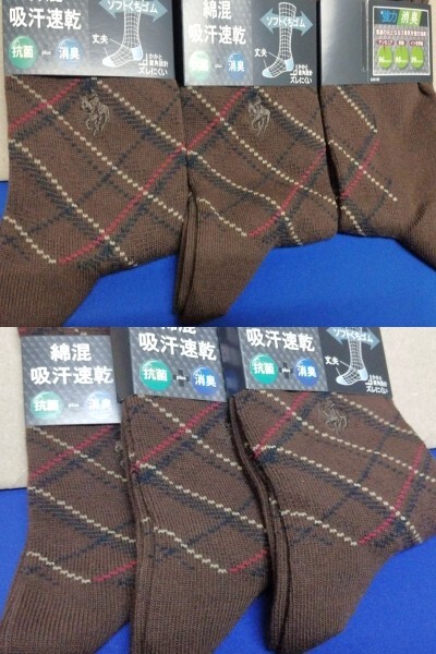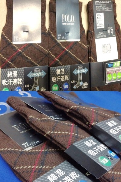 7f)3足)茶柄 25-27cm)グンゼ★POLO ソックス 靴下 綿混 吸汗速乾 抗菌 消臭 ソフトくちゴム かかとズレにくい ポロ PBU045★新品送料込