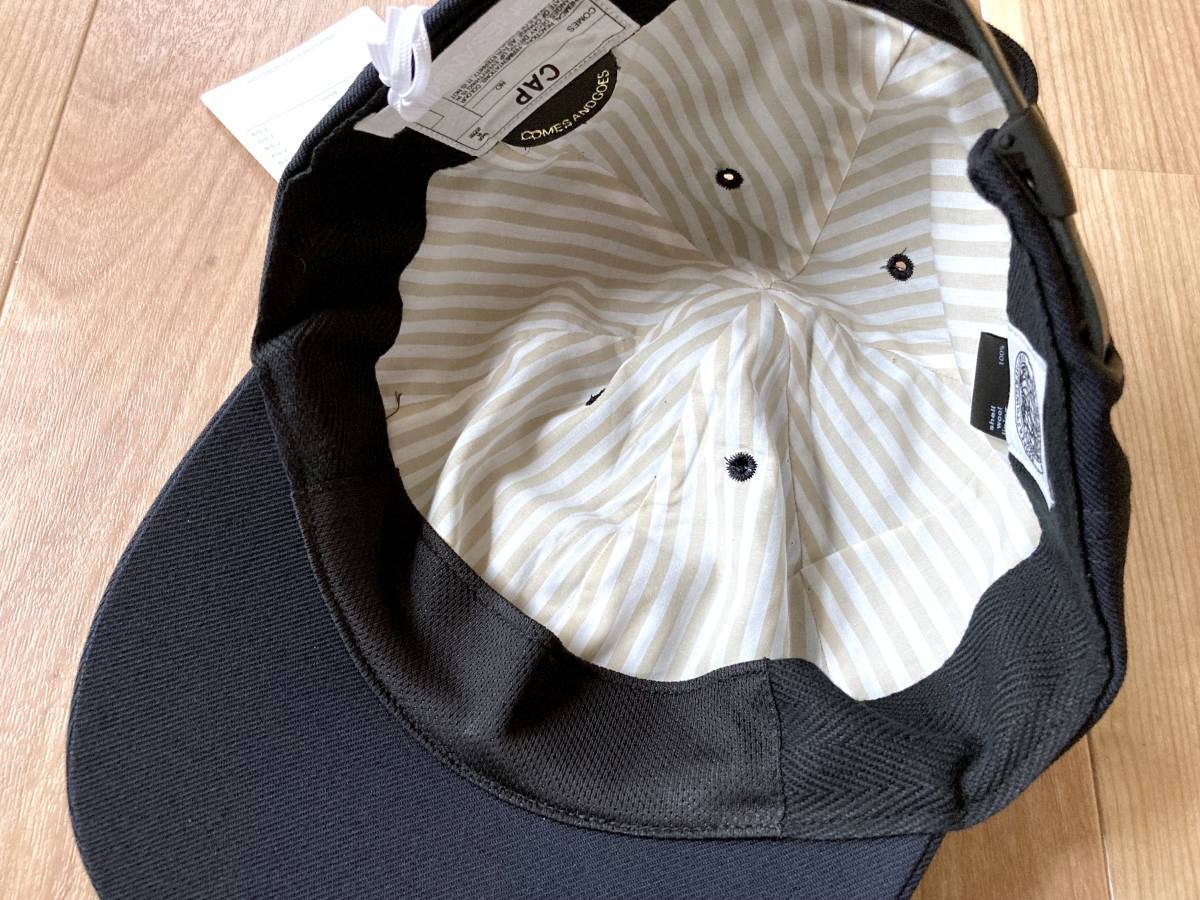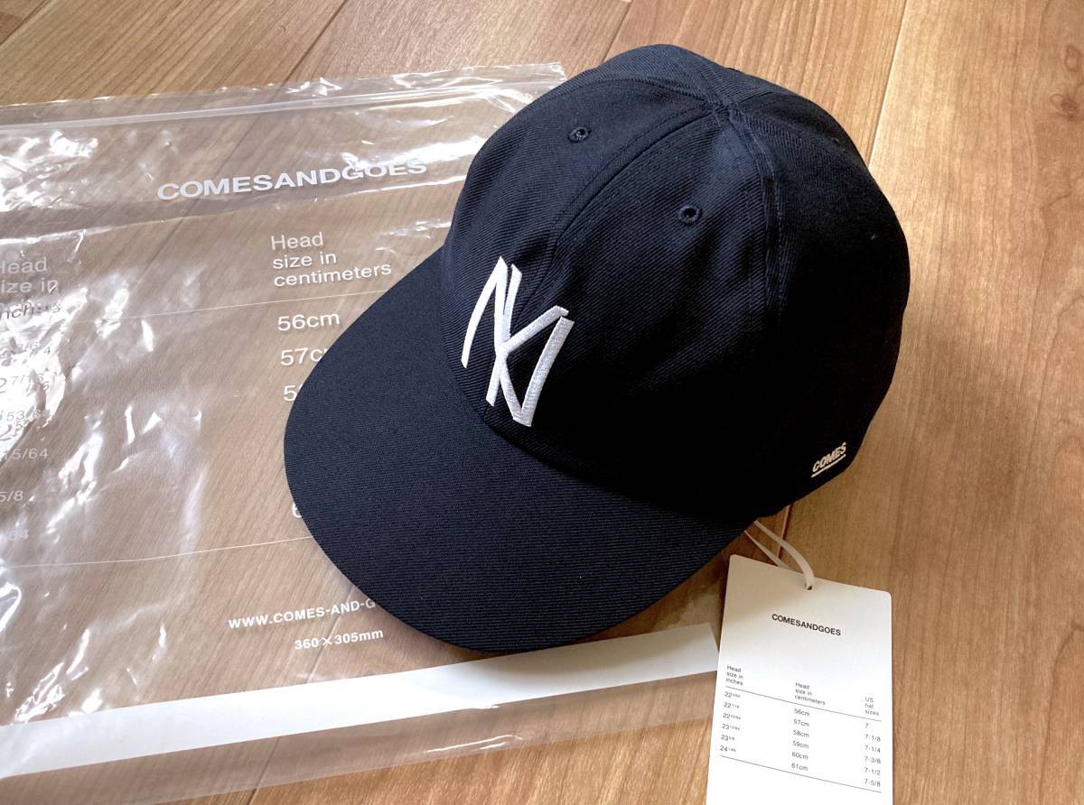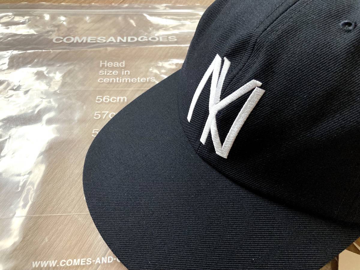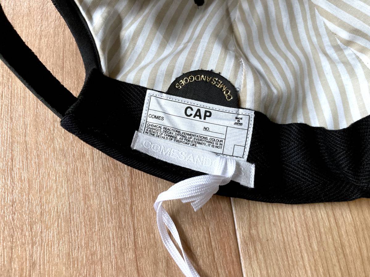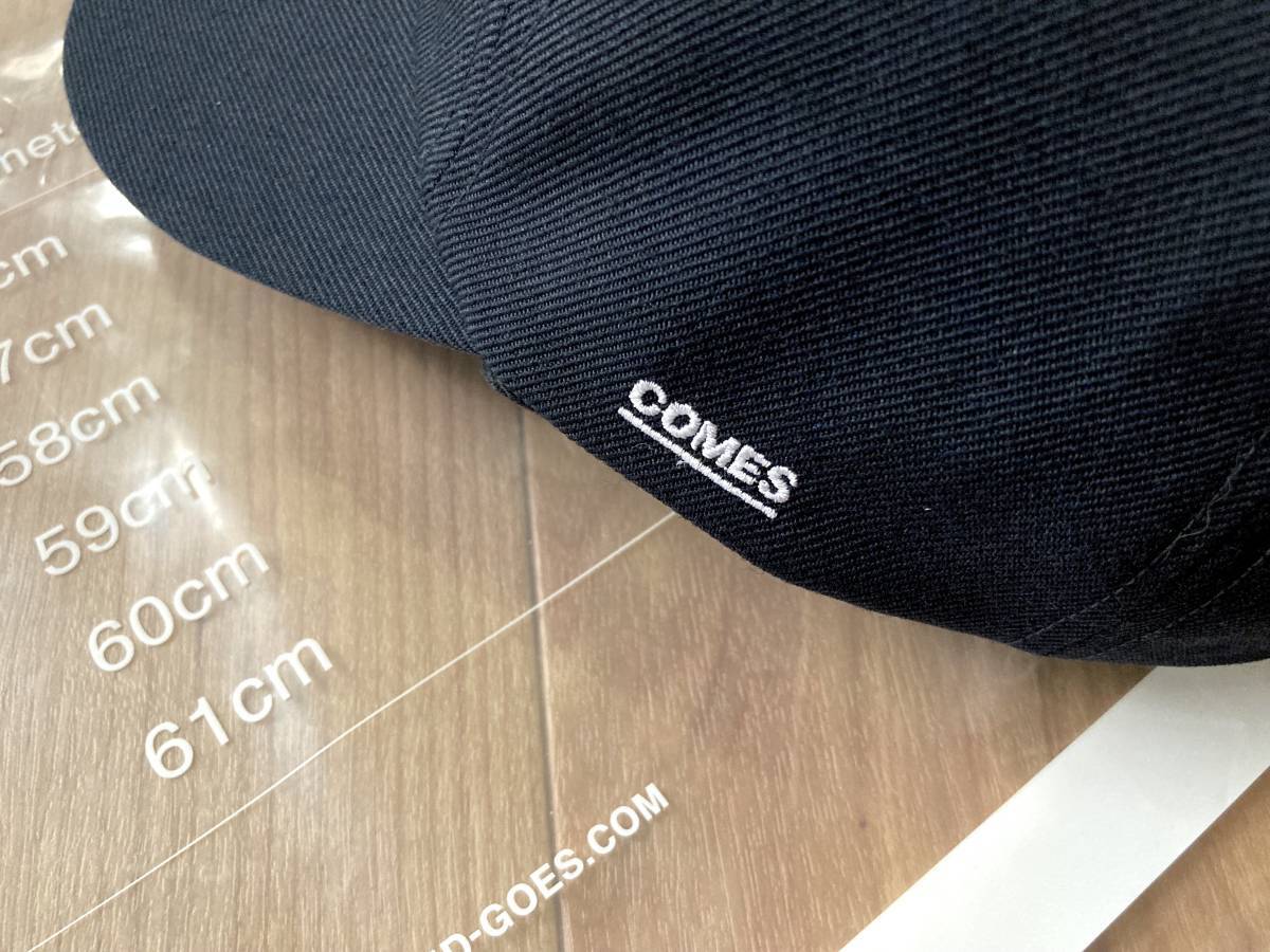 帽子の裏面にCOMESANDGOESのネームタグ、左サイドにCOMESの刺繍が配置。