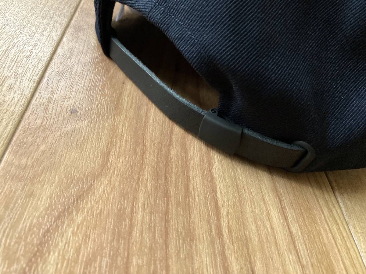 アジャスターベルトは牛革ベルトにツヤなしバックルと小判ハトメ。