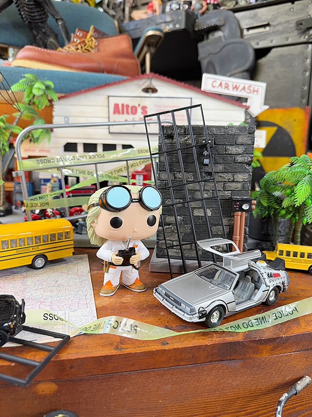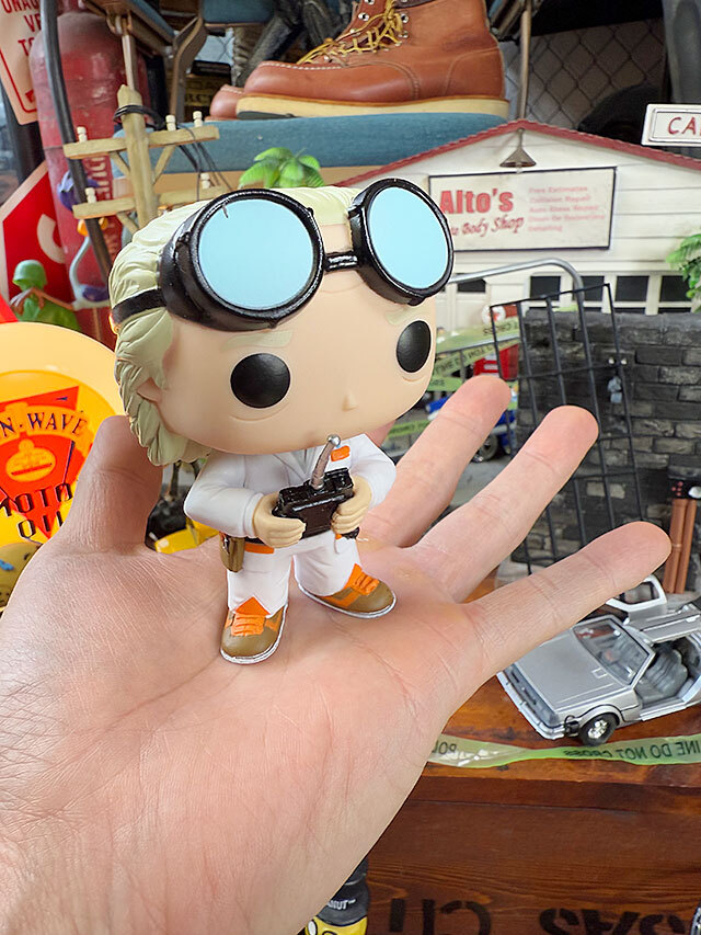 実験服を着て、プロポでデロリアンを操作するドクを再現してあるっていうマニアックなアイテム!