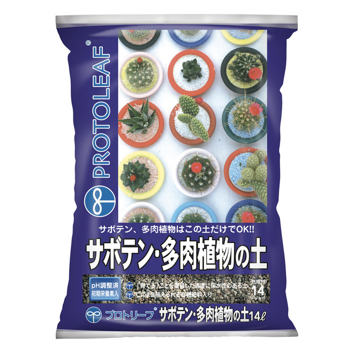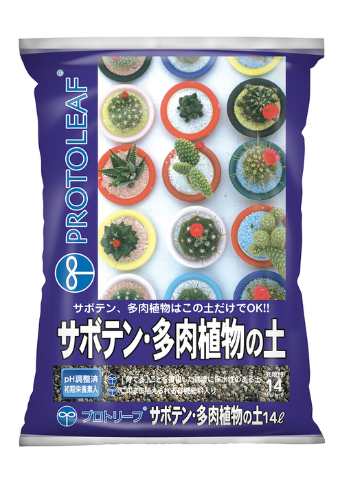 「プロトリーフ サボテン・多肉植物の土」はサボテンと多肉植物を育てるために開発した保水性と排水性に優れた培養土です。