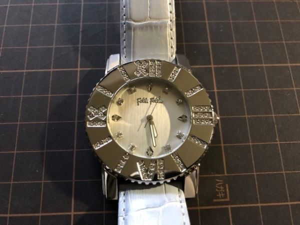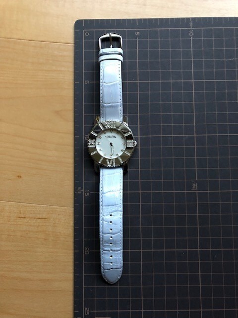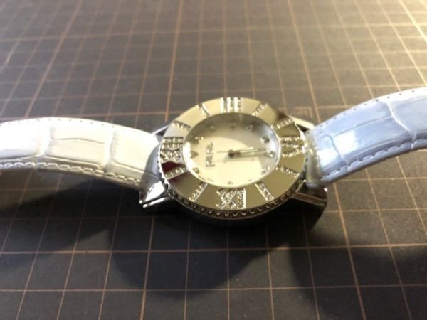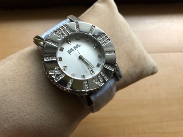 良品程度 良デザイン FOLLI FOLLIE フォリフォリ ストーン ベゼル インデ シルバー×水色 純正革ベルト クオーツ レディース 腕時計