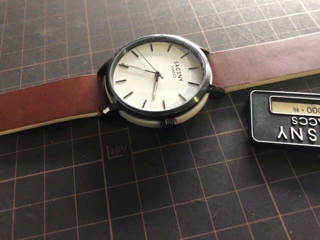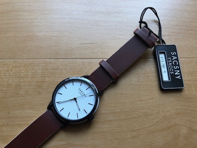 新品 タグ・フィルム付き 良デザイン SACSNY Y'SACCS サクスニーイザック ホワイト×ブラウン クオーツ メンズ 腕時計