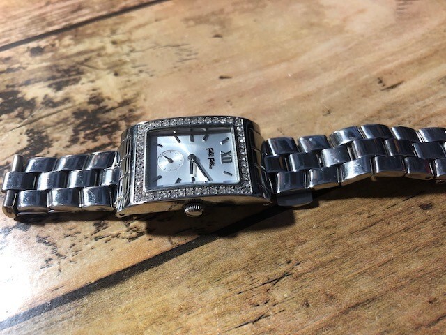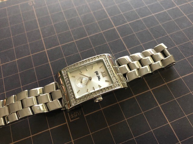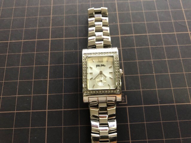良品 良デザイン FOLLI FOLLIE フォリフォリ ストーンベゼル スモセコ 角ケース シルバー クオーツ レディース 腕時計