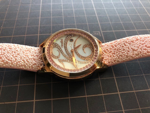 デザイン性の高い、ゴールドカラー、シェルダイアルの雰囲気良いモデル。