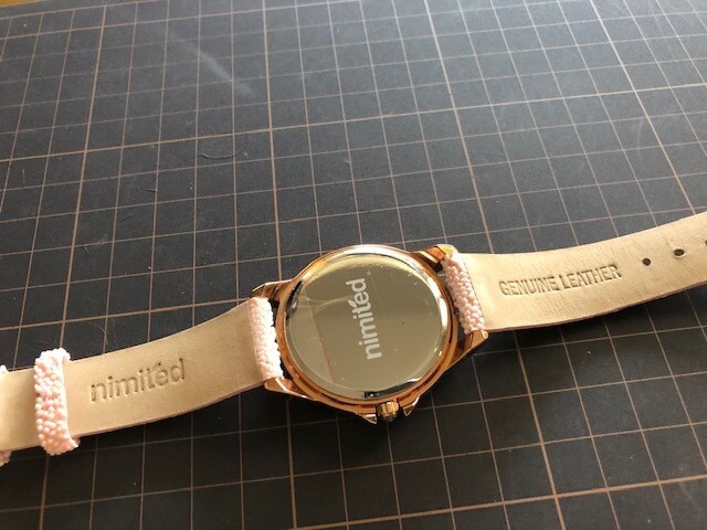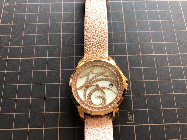美品 良デザイン nimited ニミテッド デイト シェル文字盤 ストーンデザイン ゴールド 純正革ベルト クオーツ レディース 腕時計