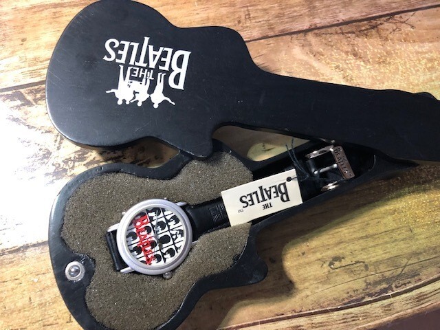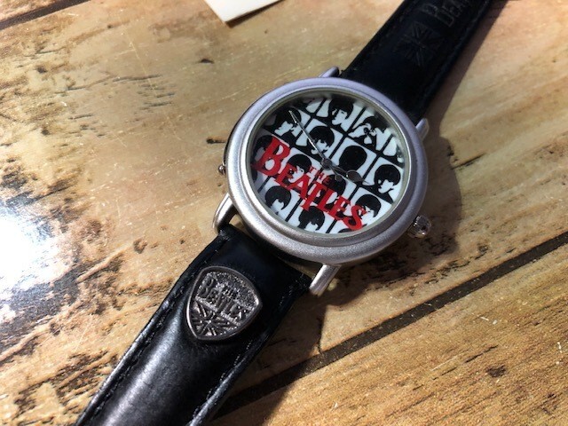 AK939 未使用同様 美品 箱付 レア BEATLES ビートルズ WBTL03 apple corps 顔デザイン文字盤 純正ロゴベルト クオーツ 腕時計