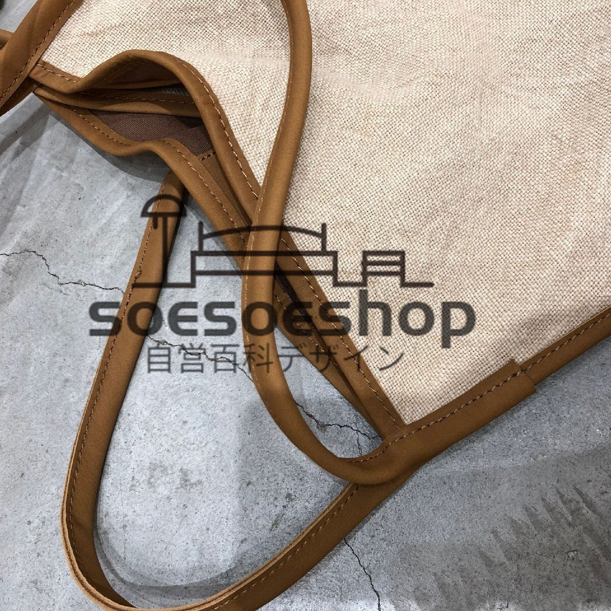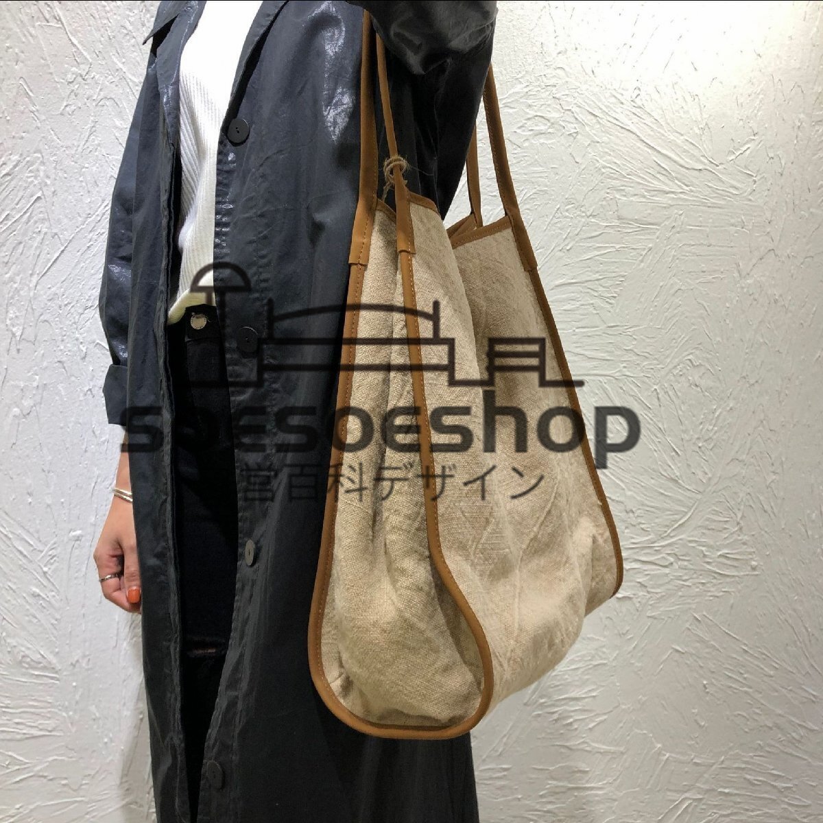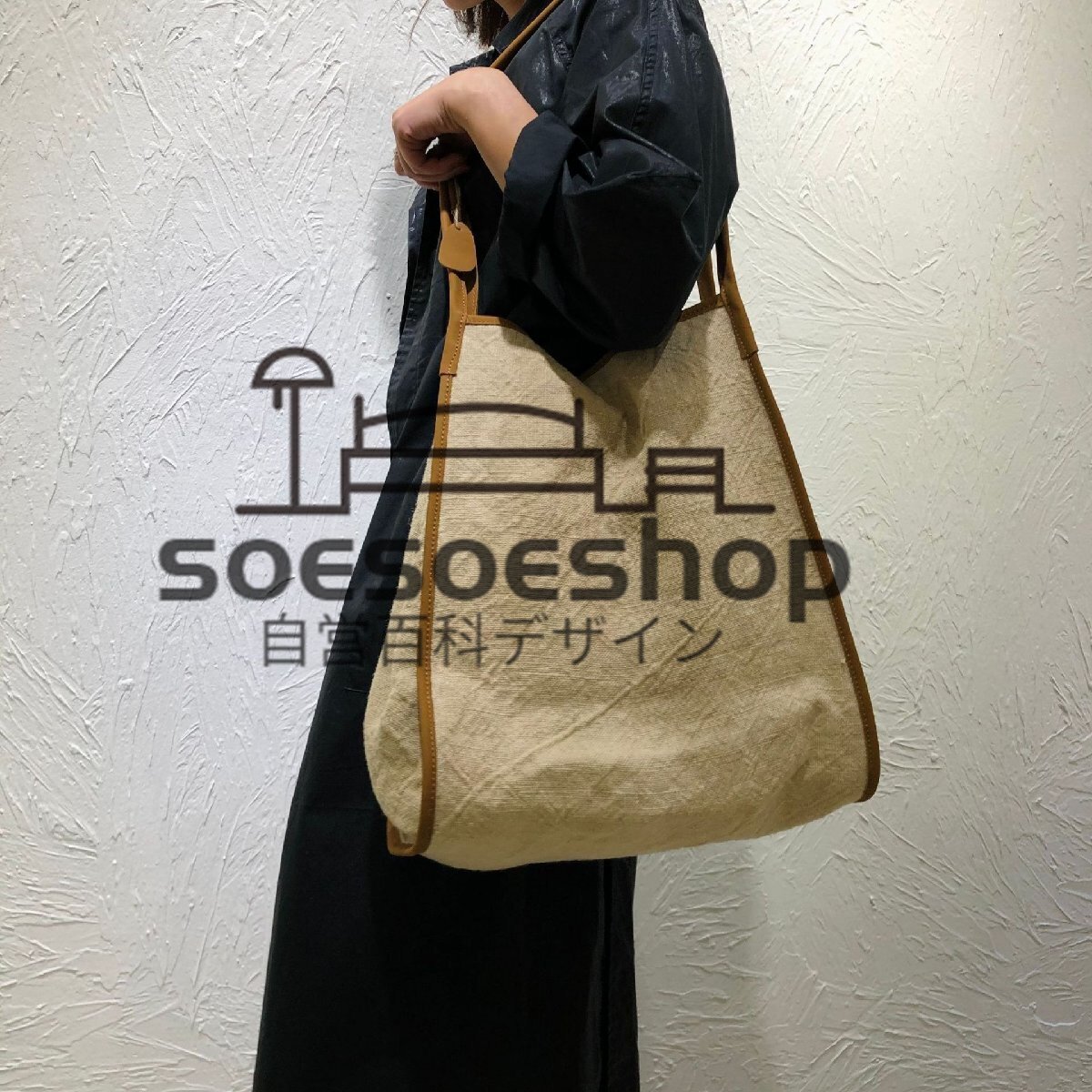 希少色★ トートバッグ A4 肩掛け 綿麻バッグ 綿麻×牛革 レディース バッグ 軽くて丈夫 カジュアル 夏秋のお出かけに ハンドメイド カーキ