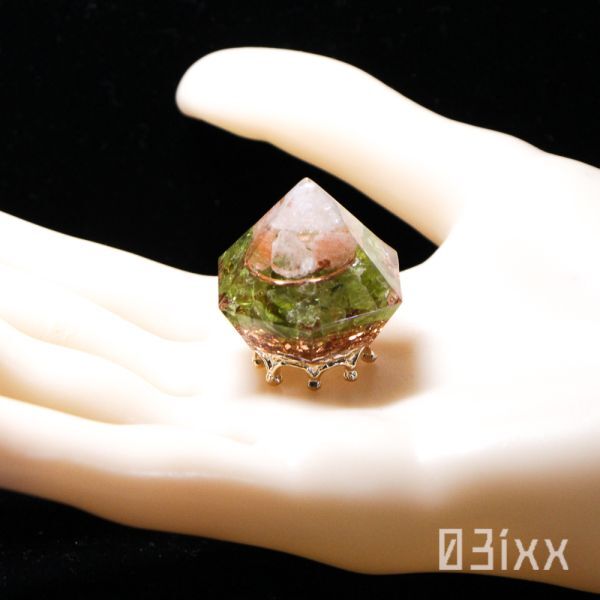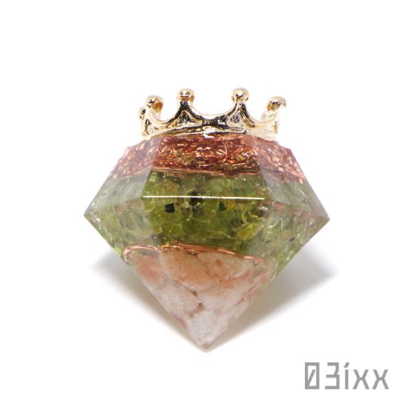 【送料無料・即決】盛塩 オルゴナイト ダイヤ型 ペリドット 橄欖石 天然石 太陽の石 お守り 03ixx【8月誕生石】