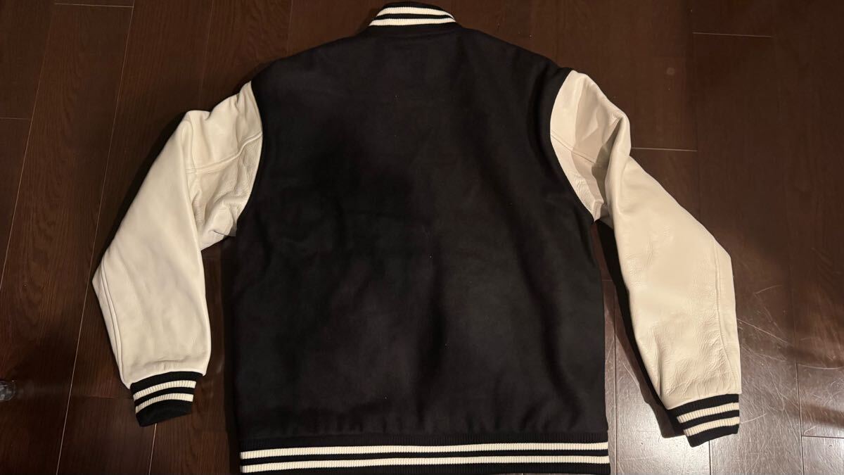 ナイロン混ウールメルトンにカウレザー袖とクラシックなラインリブを施した、F.C.R.B.のサポーターウェアの代表格とも言えるスタジアムジャケット。キルティングの裏地を用いることで着用時の保温性を向上させています。