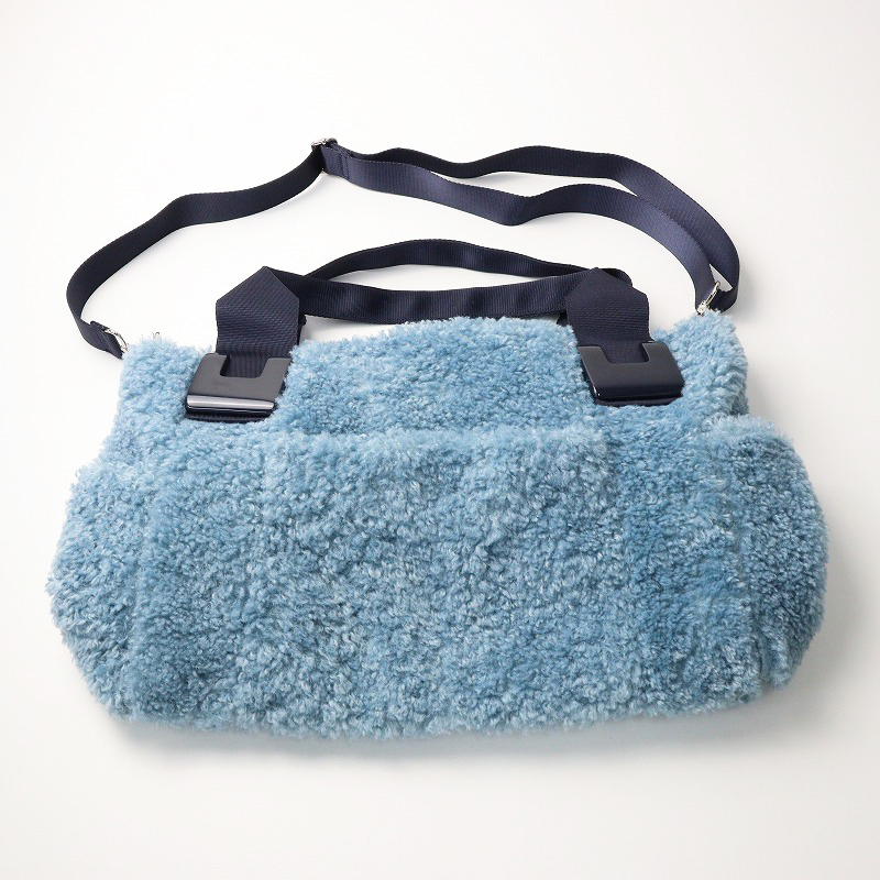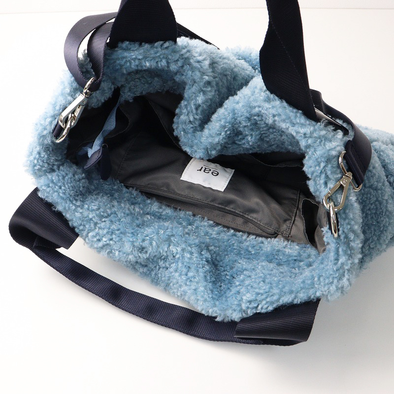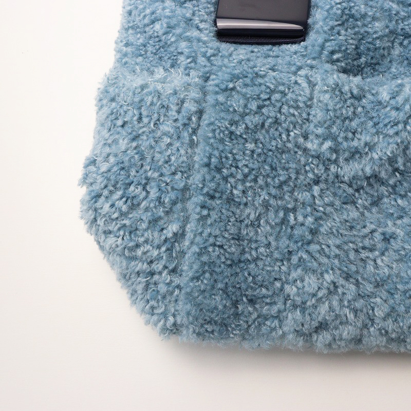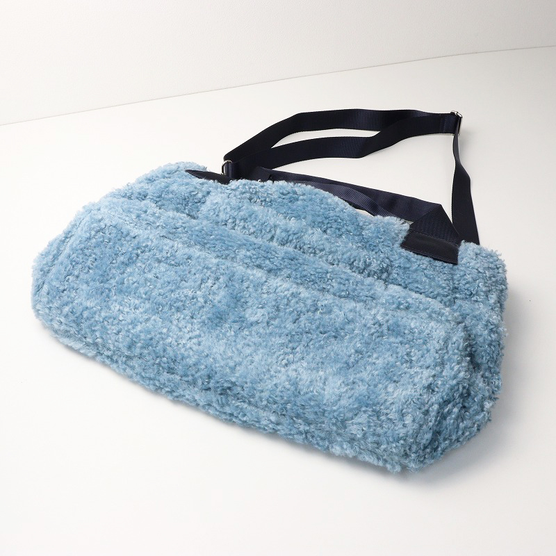 美品 イア パピヨネ ear PAPILLONNER ボア樹脂パーツトートバッグS/ブルー ハンドバッグ もこもこ ファー ショルダー【2400014309706】