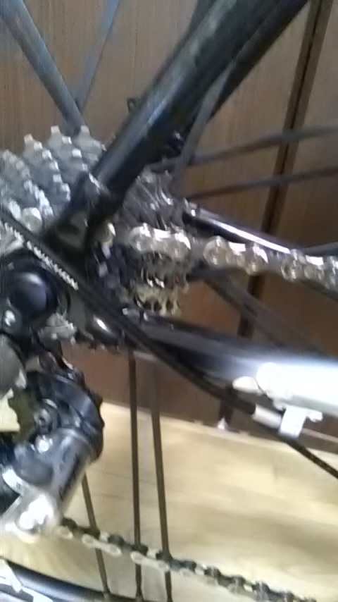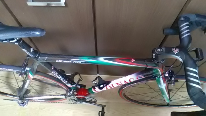 コンポ:カンパニョーロ10s カーボンクランク(52x39)、FD,RDカーボン、エルゴパワーパワーカーボン⇒新品ケーブルで組み付け