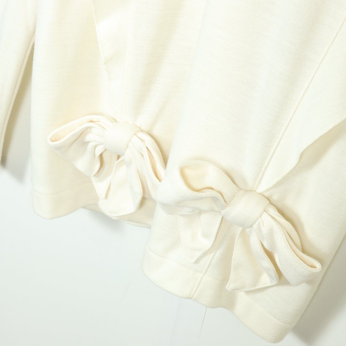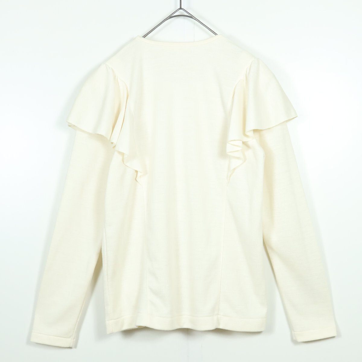 商品説明 | 【実寸約】肩幅40袖丈55.5バスト90着丈57(cm) ウエスト60丈77 (cm) 【サイズ表記】 なし。実寸をご参照くださいませ。 【素材】ポリエステル65レーヨン35 【状態】普通の使用感のあるお品物 ひっかけ少々あり 【デザイン】アイボリー系 長袖カットソーとフレアスカートのセットアップ商品です。 無地/肩パットあり |