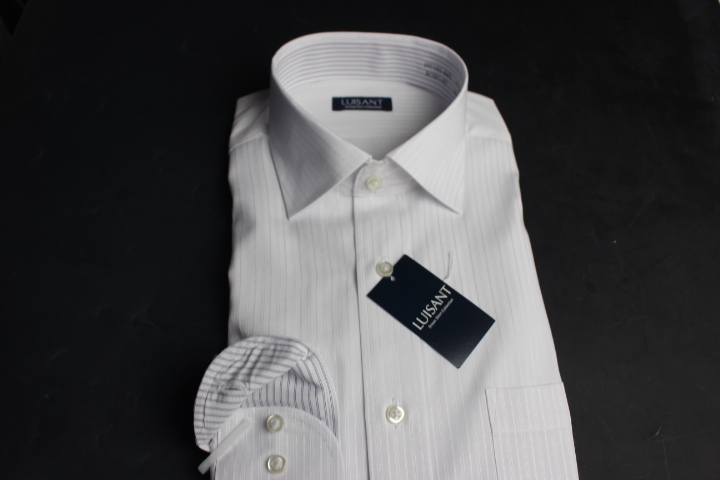 2枚セット【新品】LUISANT (山喜)ワイドカラー/ワイシャツ 長袖 /標準体/ 形態安定  LL(43-86)  白ストライプ柄 UND101/043(7A562.563