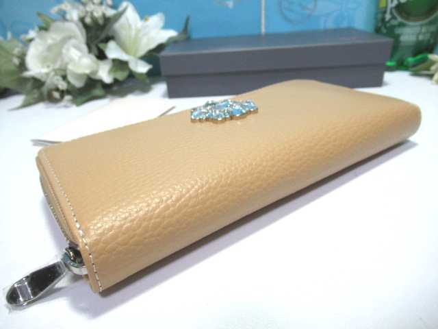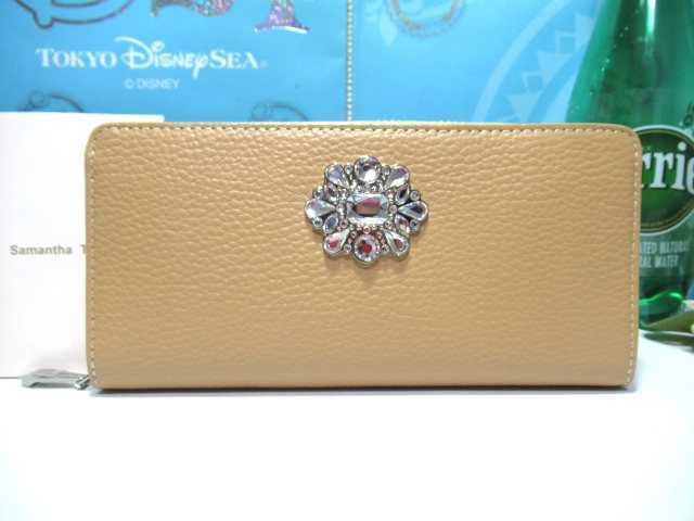 送料無料 55%引 サマンサタバサデラックス 豪華 キラキラ ビジュー付 牛革 ラウンドジップ ファスナー 長財布 キャメル 新品 証明書付 開運