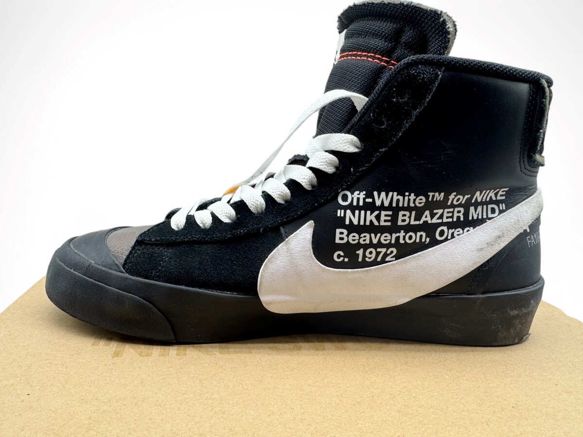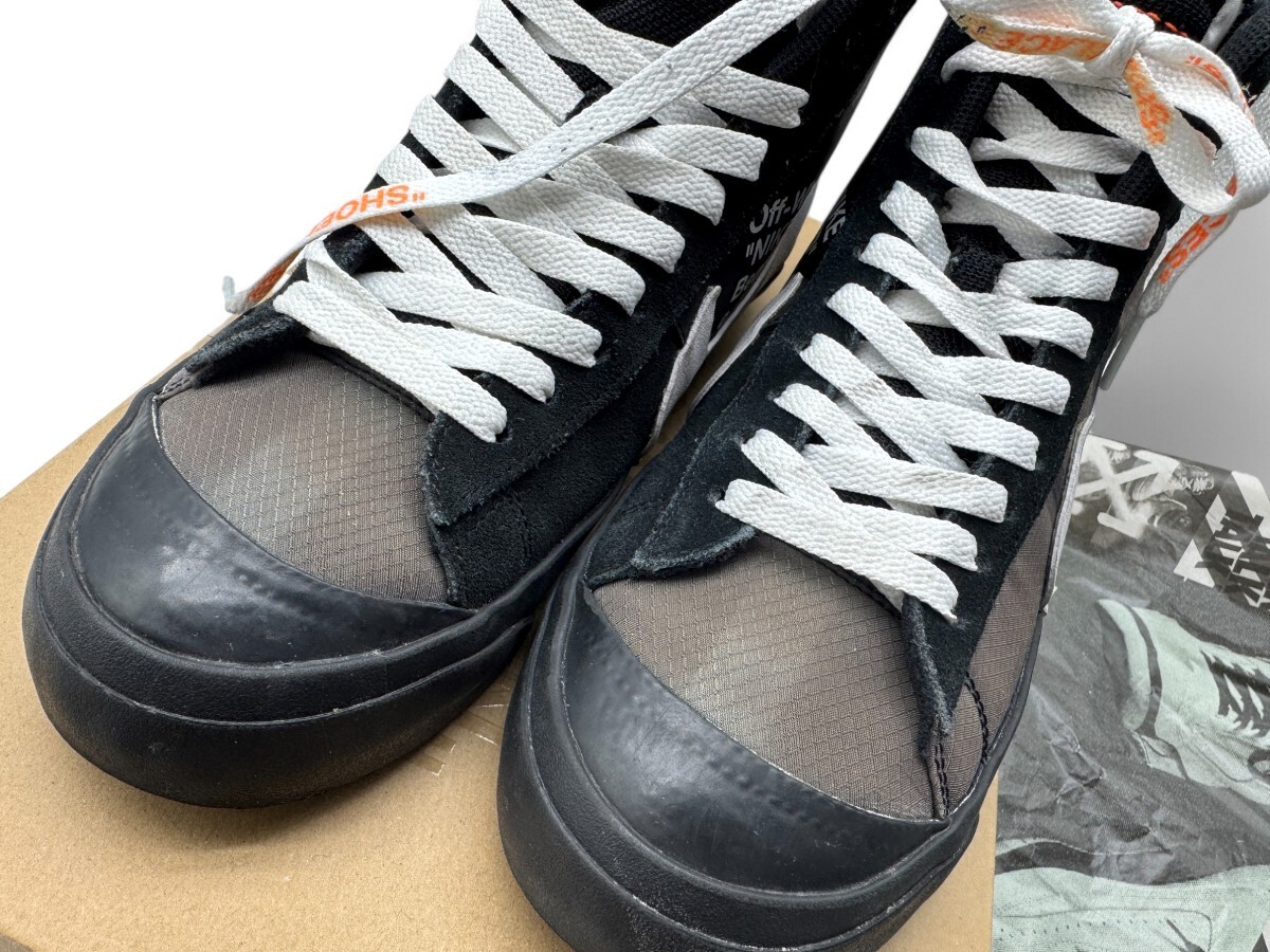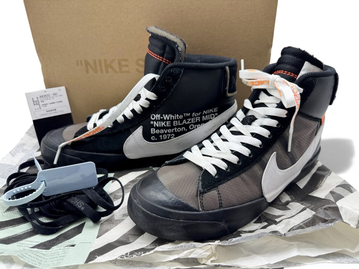 NIKE × OFF-WHITE ナイキ オフホワイト THE 10 BLAZER MID ブレーザー ミッド AA3832-001 スニーカー 靴になります。 「REVEALING」と「GHOSTING」という2つのテーマのもと、10足のモデルを製作した「THE 10」シリーズのひとつで、「NIKE BLAZER」をベースに、REVEALINGをテーマにリデザイン。 インサイドにはOFF-WHITEのアイコニックなヘルベチカフォントのスタンプを配置。 おなじみとなったジップタイが付いたスペシャルエディションとなっています。 格安からの売り切りですので、宜しくお願い致します。 |