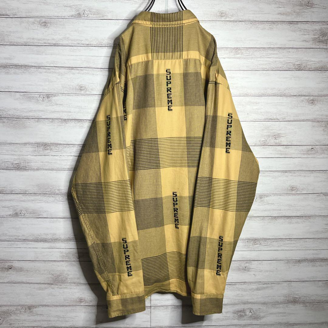 【入手困難!!】シュプリーム 刺繍 長袖シャツ チェックシャツ ゆるだぼ