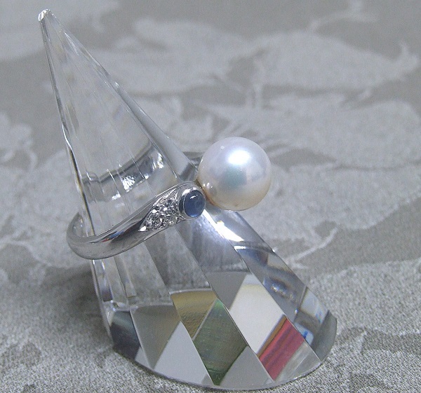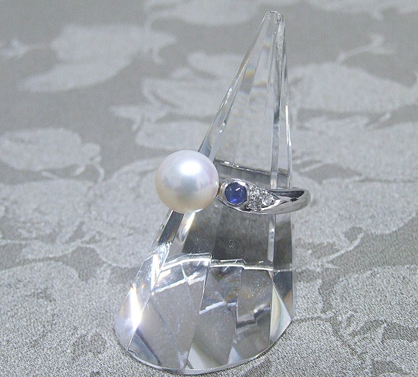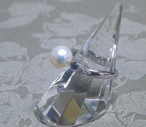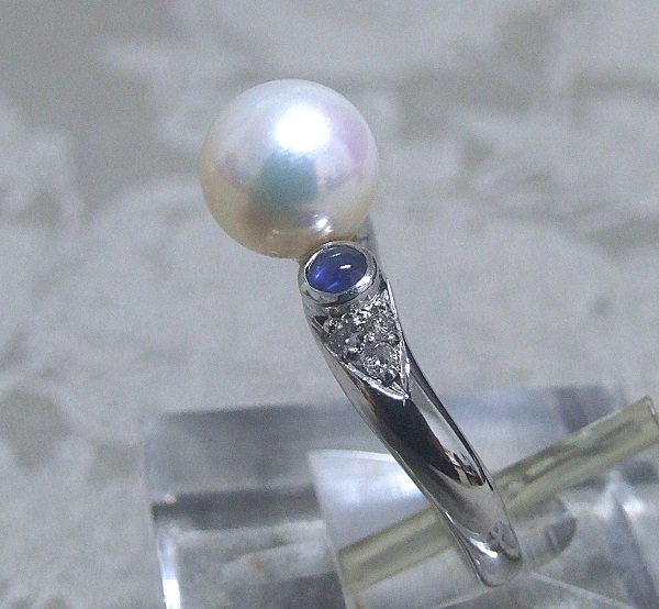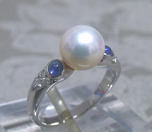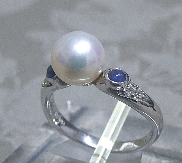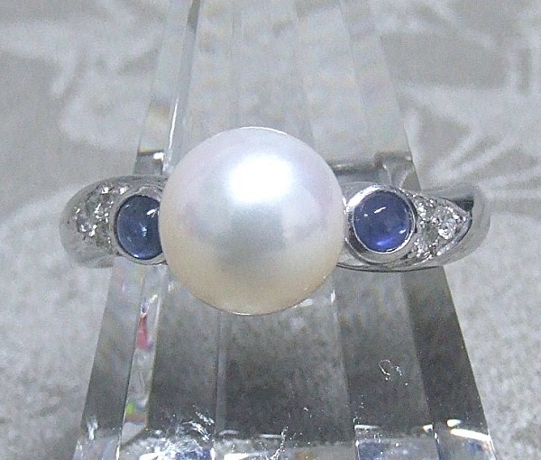 ◆ 在庫大処分!超得プライス!■ とても綺麗!★ ” アコヤ真珠 ”9mm ★ パール ” ◆ サファイア2石とダイヤ入り ◆ プラチナ台 ◆