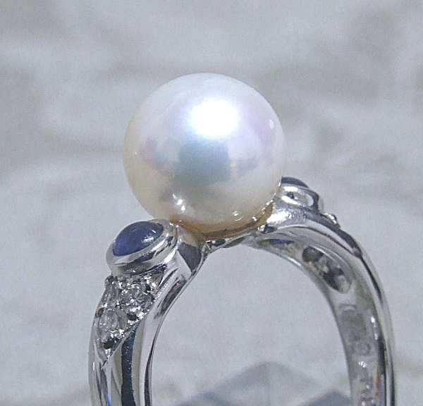 ◆ 在庫大処分!超得プライス!■ 美しい光沢! ” アコヤ真珠 ” ★ 9mm ◆ 青サファイア2石&ダイヤ入り ■ プラチナ台 ◆ パール ◆