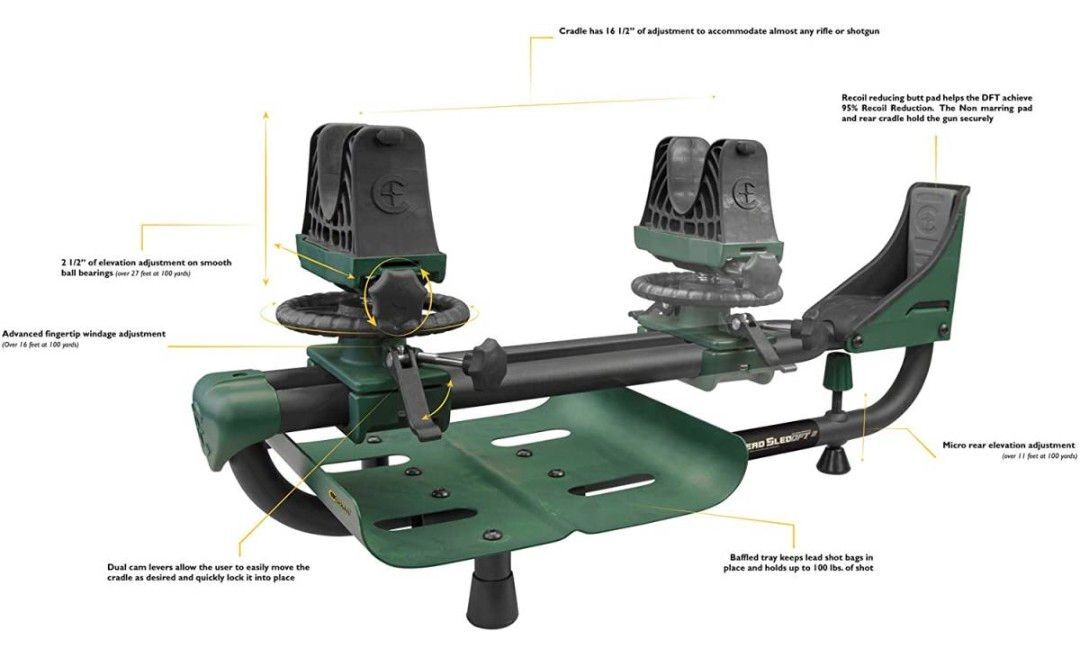フロントレストは18インチの範囲で前後にスライドさせる機能を備えているのであらゆるサイズのライフルやショットガンに適合します。