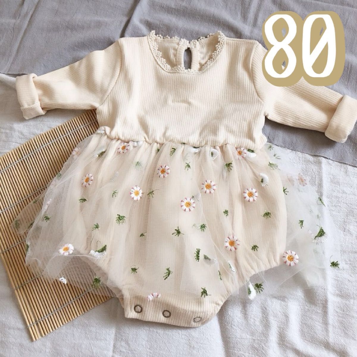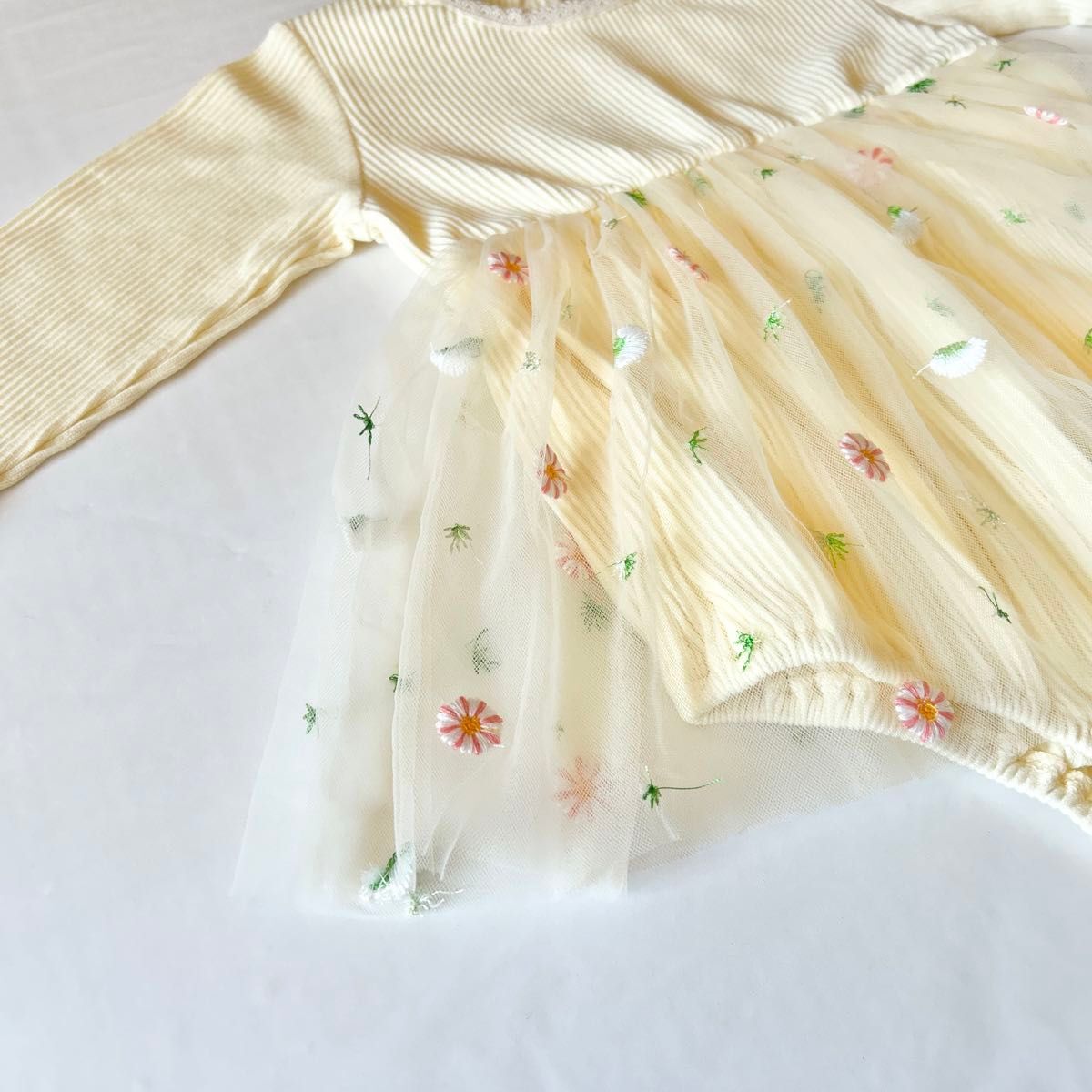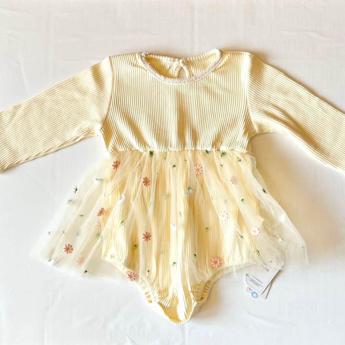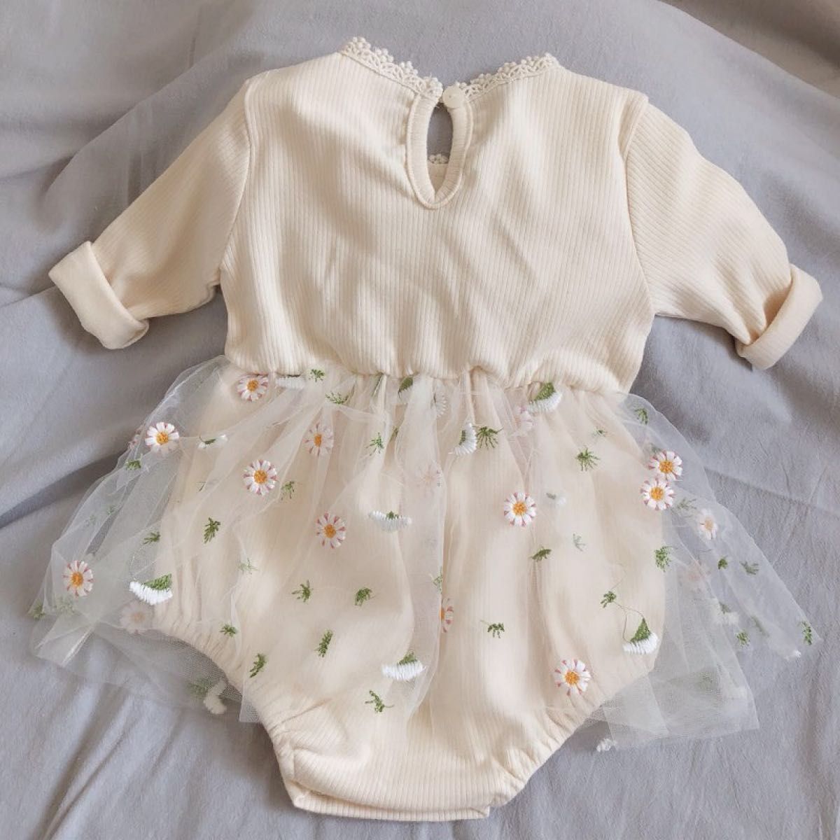 花の刺繍がとっても可愛いチュールスカートのついたロンパース、ボディスーツです☆